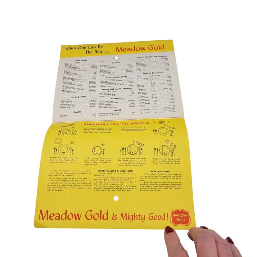 • Features festive illustrations and recipes • Includes hostess tips and table setting guides • Full 1966 calendar with monthly spreads • Meadow Gold branding throughout