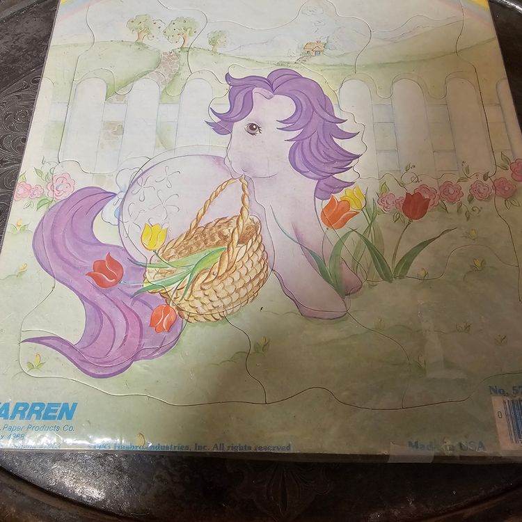 Character: Purple My Little Pony with flowing mane and basket of tulips