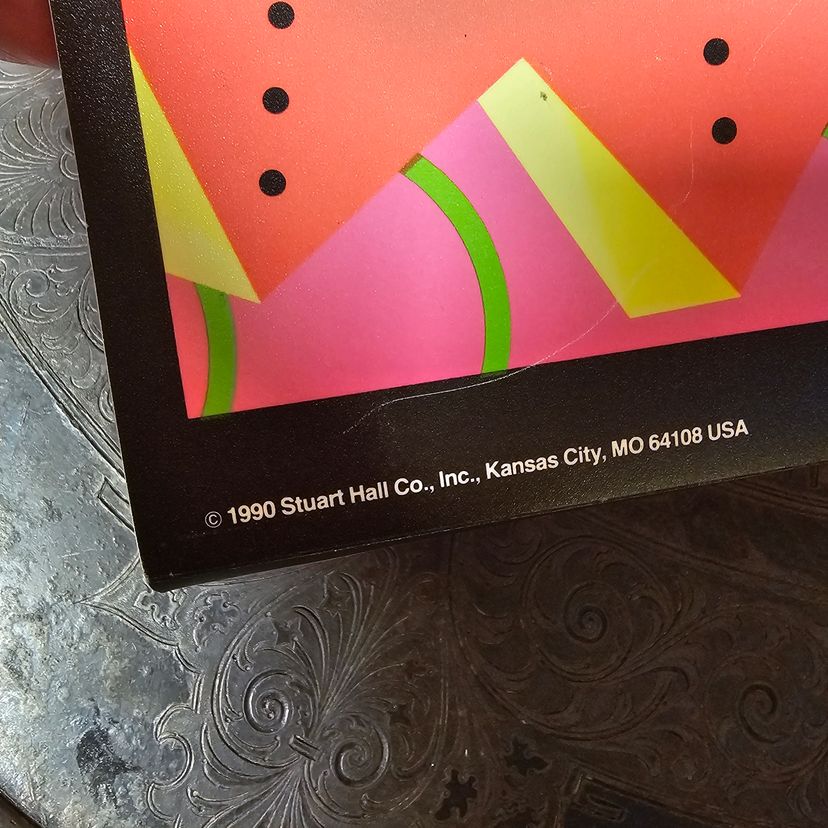 Design: Bright pink, neon yellow, and lime green abstract sun face with wavy accents โ classic early โ90s graphic vibes