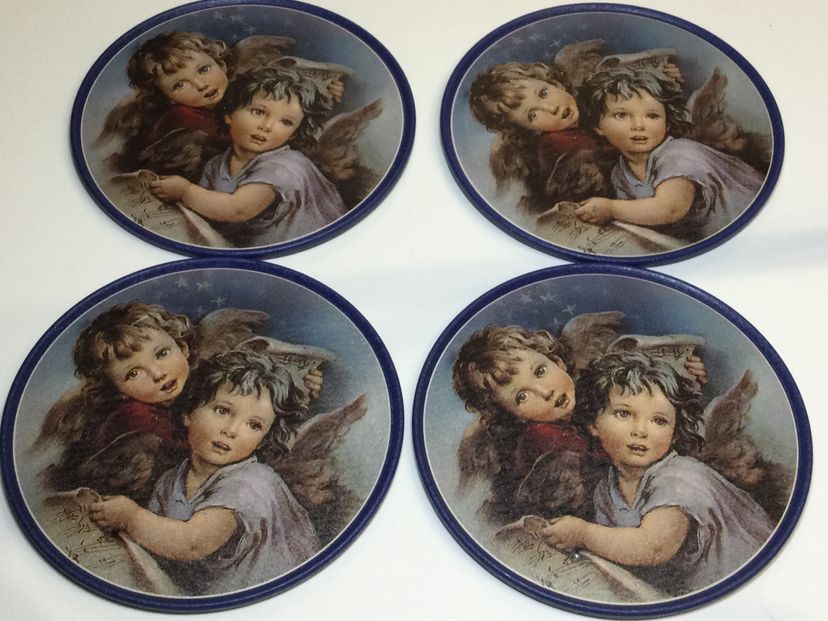 Vtg 1996 Cherub Angel Coasters and Coaster Holder by House of Lloyd Set Of 4
