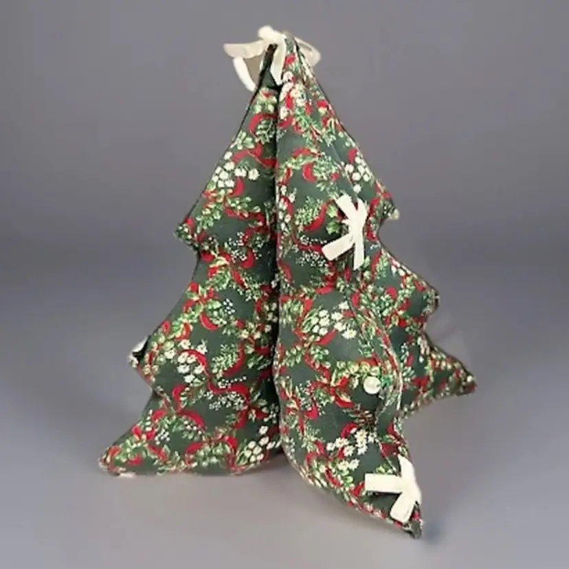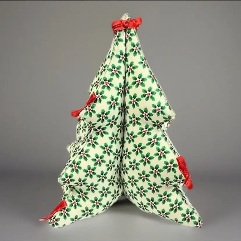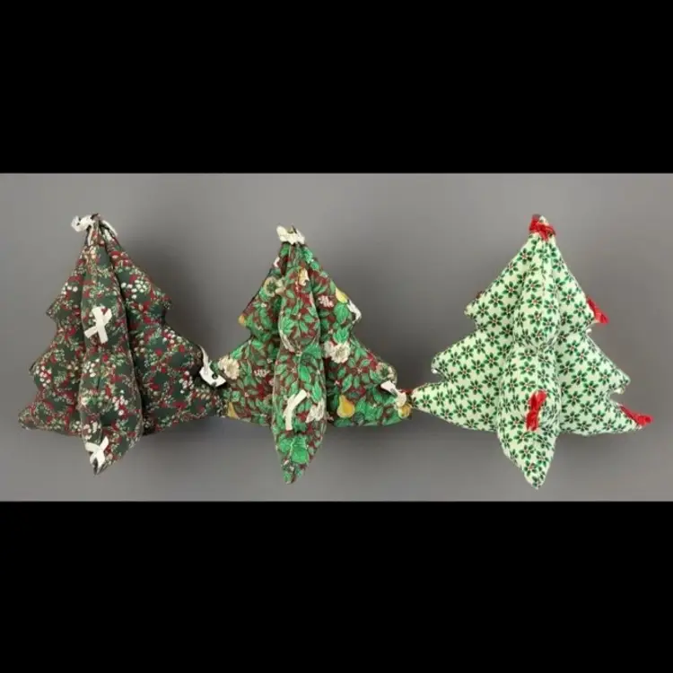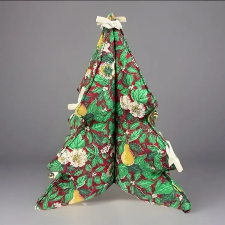 Add a festive touch to your Christmas table with this vintage 3D stuffed fabric Christmas tree. The quilted design and multicolor bells make it a unique addition to your holiday decor. Made of cotton and handmade in the United States, this table decor is perfect for any Christmas occasion. Whether you're looking for a personalized touch or a unit to add to your collection, this Christmas tree is sure to impress.