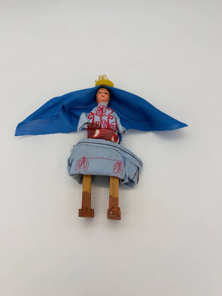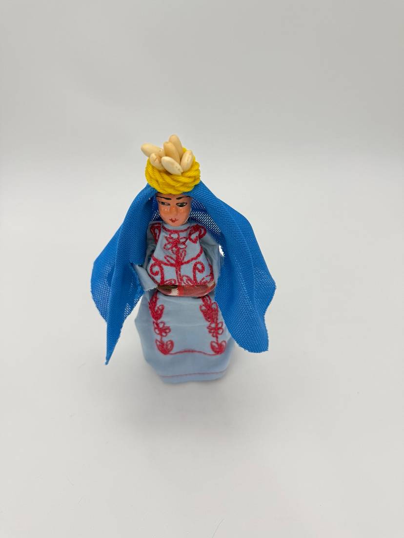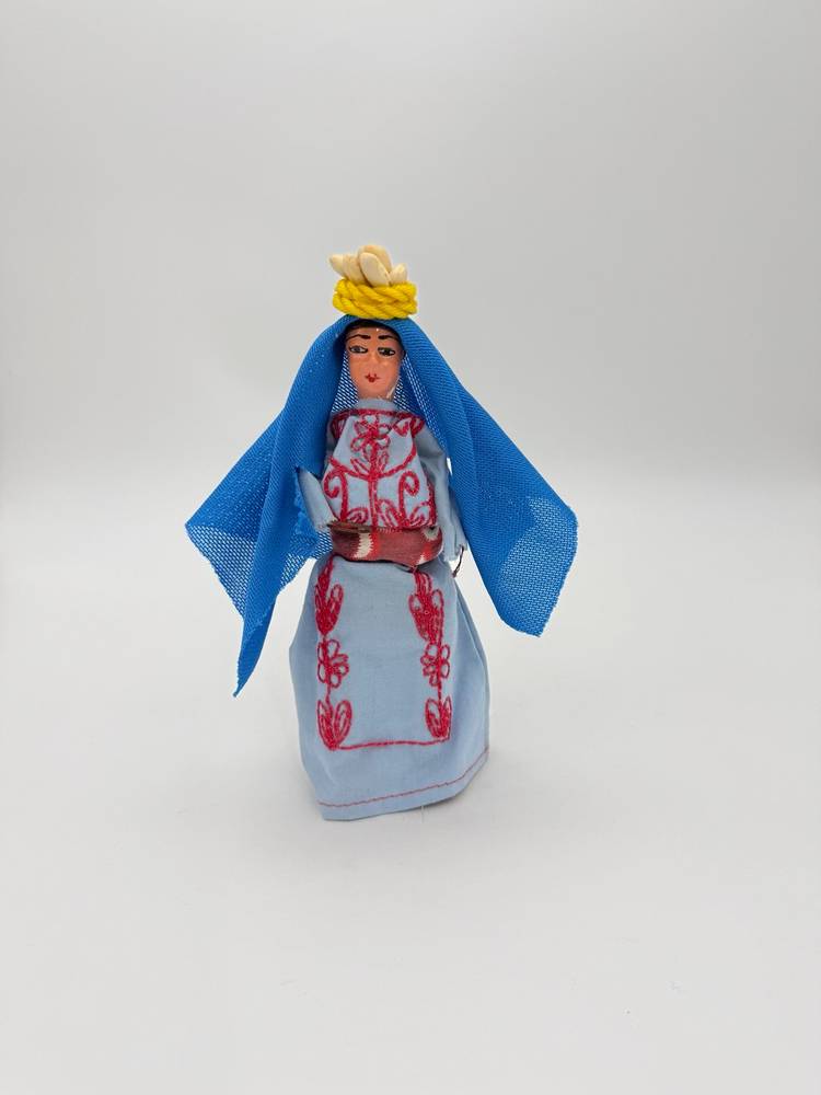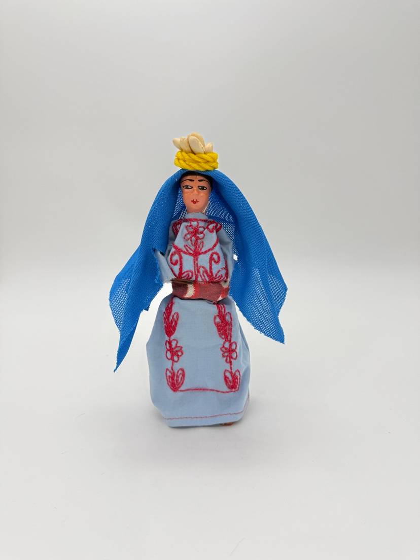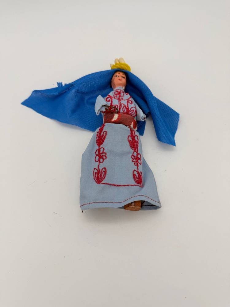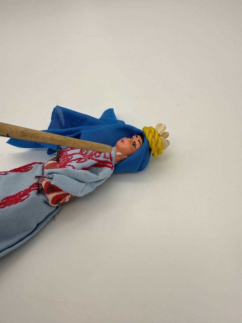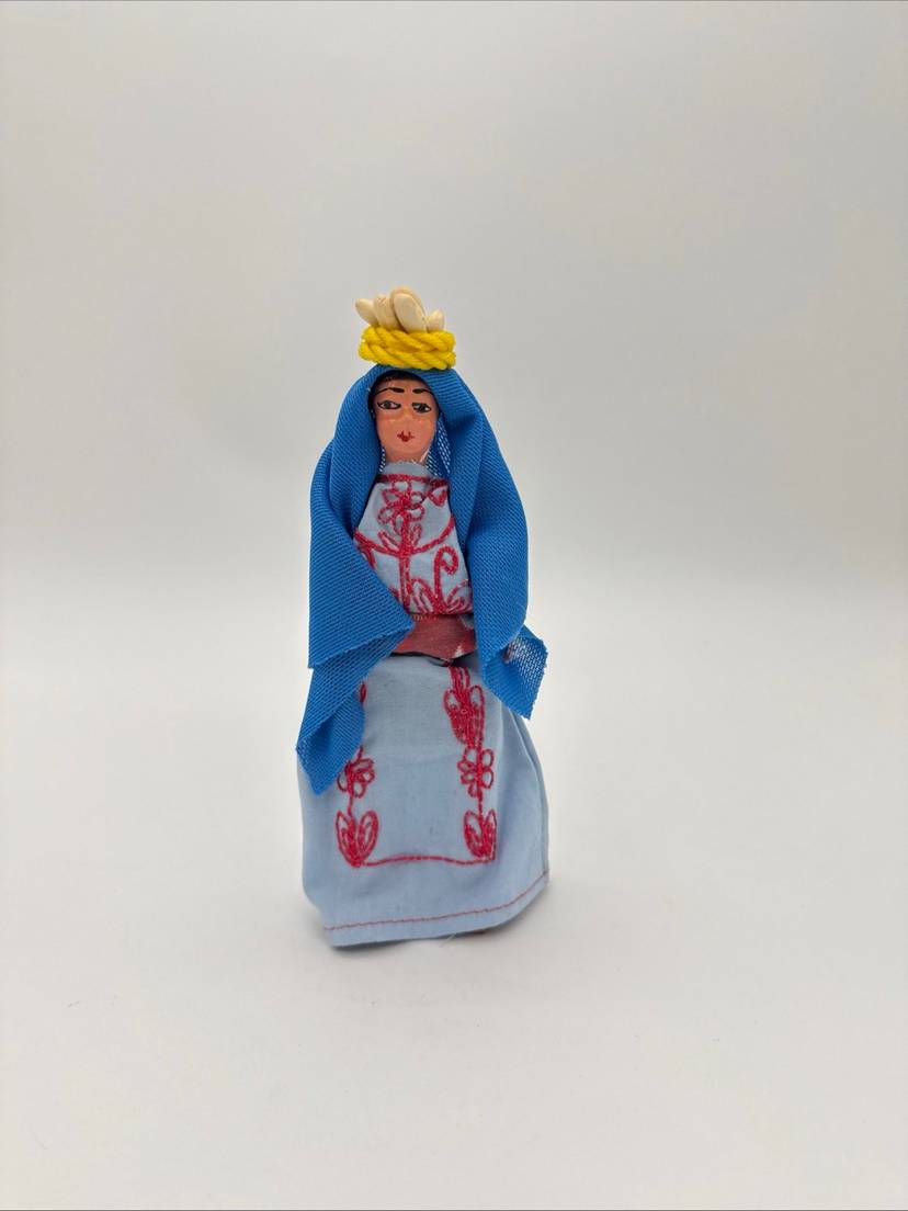This vintage handmade wooden Mache doll figurine is a unique piece of Middle Eastern art, featuring intricately sewn clothing and intricate details. Measuring 8 inches in height, this collectible item showcases the craftsmanship and cultural influence of the Middle Eastern region. With its authenticity and artistic design, this figurine would make a valuable addition to any collector's display, or dollhouse.