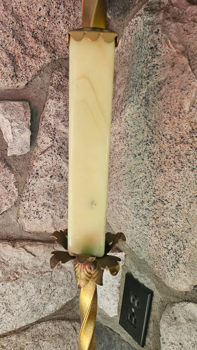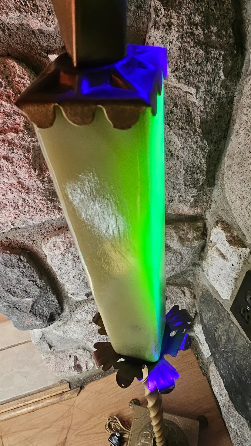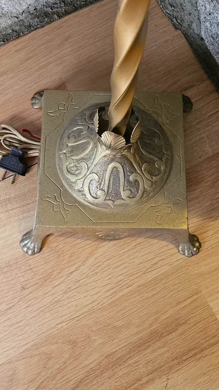 • Measures roughly: 57.5" tall × 11" across the top & 9"×9" at the base. • The Akro Agate like slag Uranium glass middle insert measures: 8" tall × 1.5" wide × 1.5" long. • Item has gorgeous claw feet, floral Petal like detailing, the bridge arm top, a pull string cord, embellished top, and gorgeous twisted stem. • Lamp appears to have a very nice electrical cord that is very vintage and should be rewired for safety reasons, though it works as it is! • Has beautiful detailing on the base of it as well. • This came from a home filled to the brim with epic antiques! • I'm excited to be able to share this one and the Jadeite one with everyone! • Use Code THE_M23 for $5 off of your purchase. • Please refer to the photos, item description, and the live auction for details as they are all part of the item description! I was unable to safely take it apart (lamps are not my forte) so this may be a bit spendy to ship.