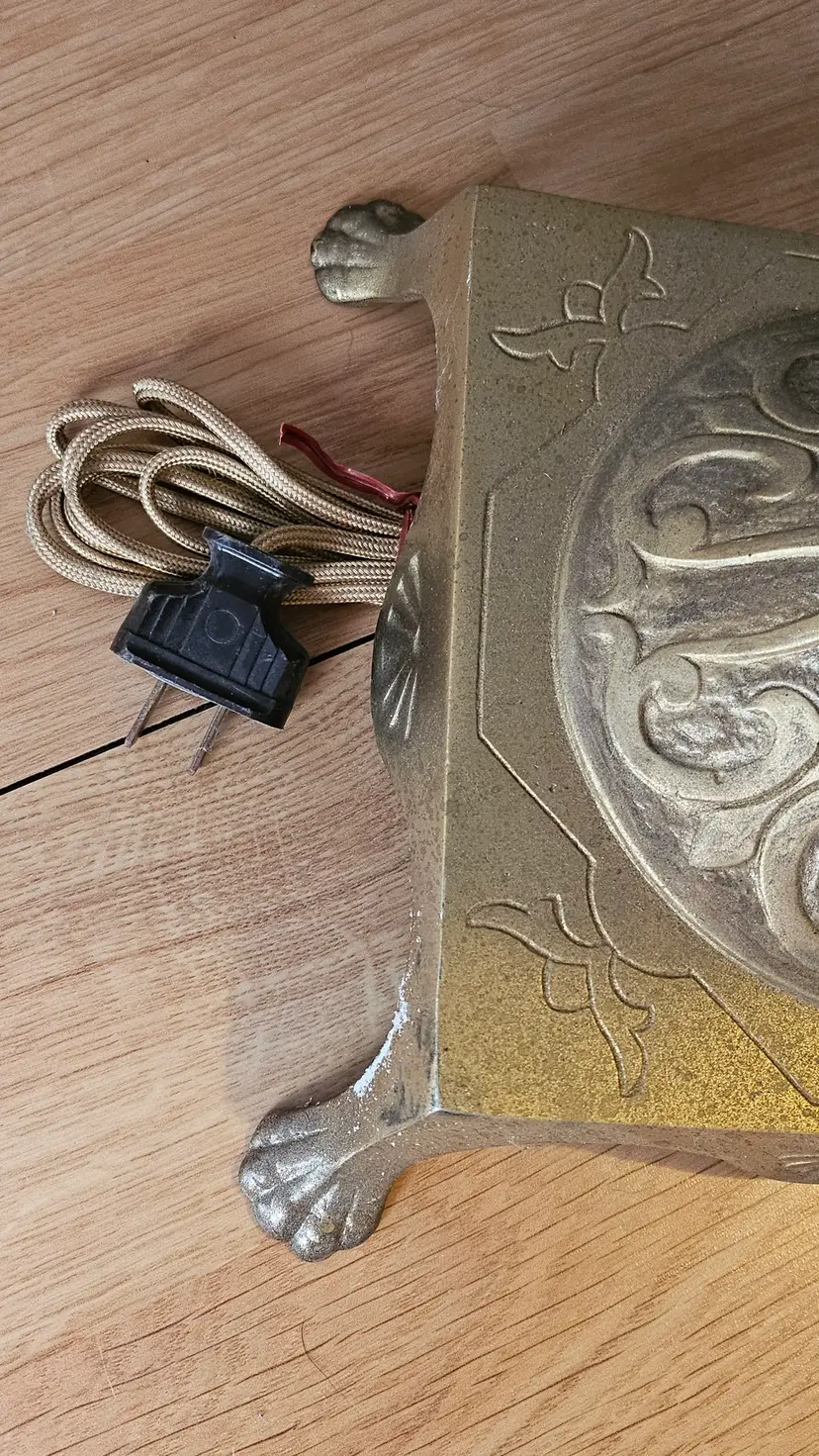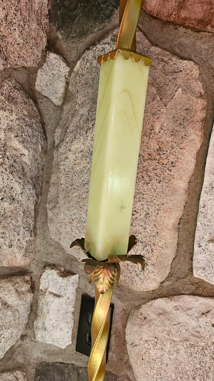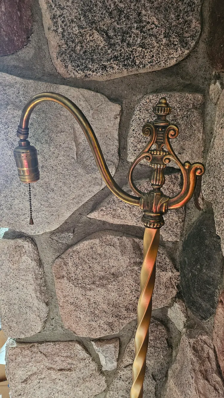• Measures roughly: 57.5" tall × 11" across the top & 9"×9" at the base. • The Akro Agate like slag Uranium glass middle insert measures: 8" tall × 1.5" wide × 1.5" long. • Item has gorgeous claw feet, floral Petal like detailing, the bridge arm top, a pull string cord, embellished top, and gorgeous twisted stem. • Lamp appears to have a very nice electrical cord that is very vintage and should be rewired for safety reasons, though it works as it is! • Has beautiful detailing on the base of it as well. • This came from a home filled to the brim with epic antiques! • I'm excited to be able to share this one and the Jadeite one with everyone! • Use Code THE_M23 for $5 off of your purchase. • Please refer to the photos, item description, and the live auction for details as they are all part of the item description! I was unable to safely take it apart (lamps are not my forte) so this may be a bit spendy to ship.