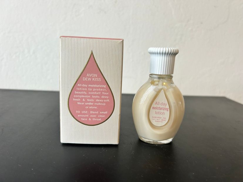 Vtg Avon Dew Kiss All-Day Moisturizing Lotion 1.5 oz IOB Please see photos for condition. There is slight damage to the flap that opens up the box from people opening the flat. Please let me know if you have any questions. Single item offers and bundle item offer seriously considered. Thank you for stopping by.