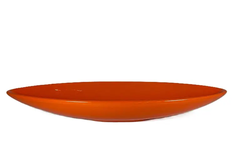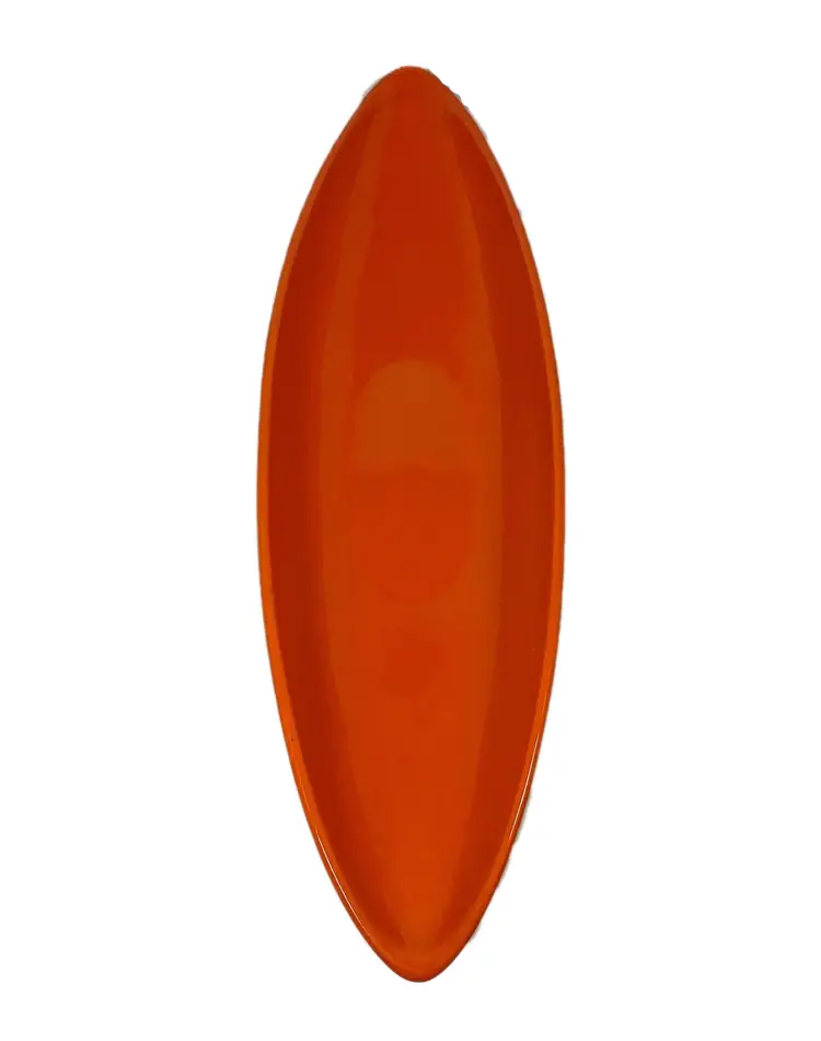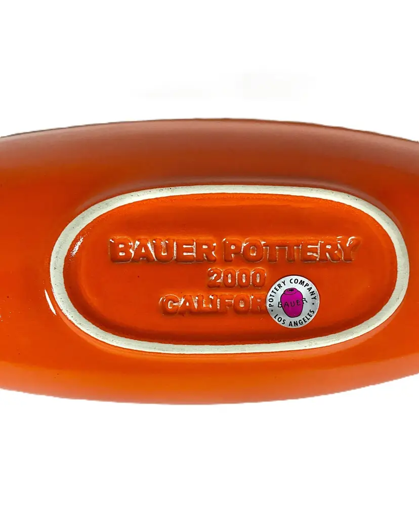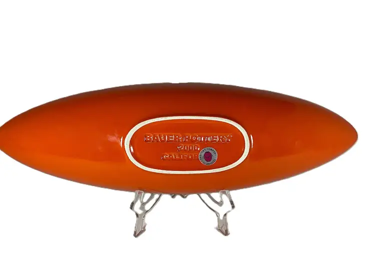 Vintage canoe shape glossy ceramic pot art deco, mid-century style by Bauer Company circa 2000. A perfect addition to a buffet or countertop when filled with fruits or succulents. Excellent condition. Dimensions: 16" length, 5" widest, 2" height. This item is out-of-the-box - NEW.