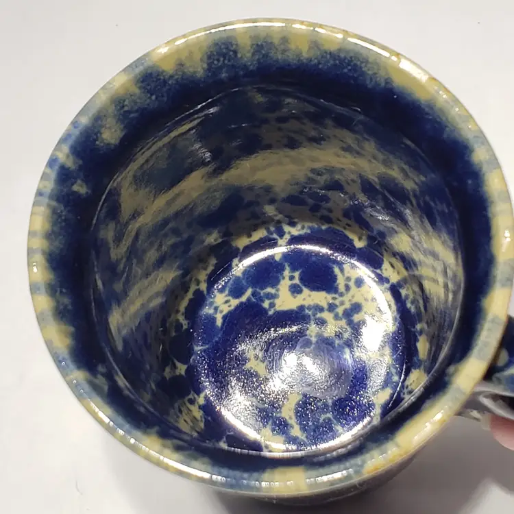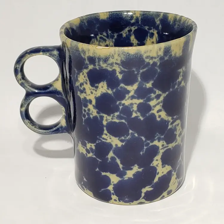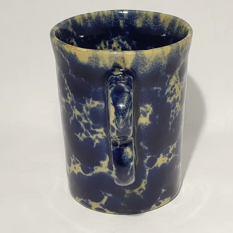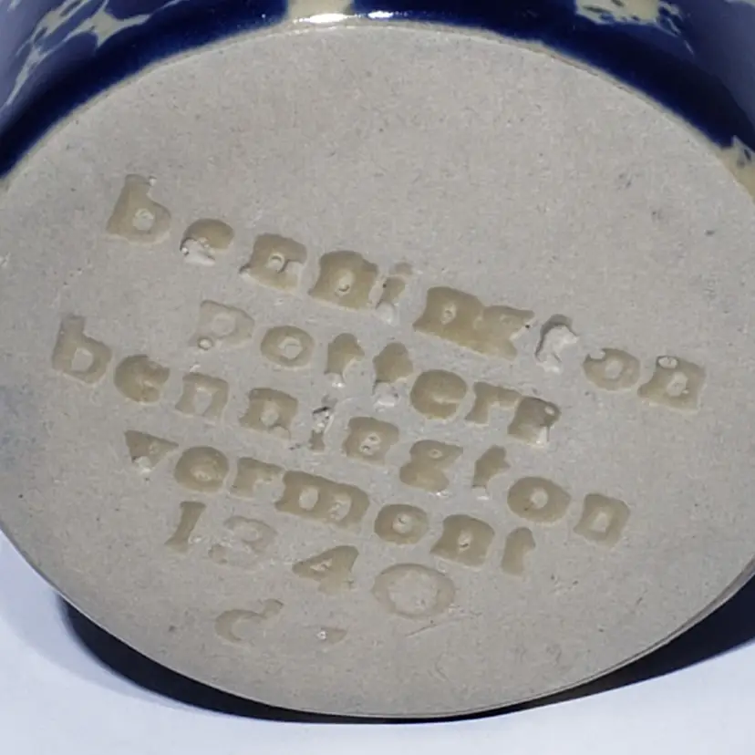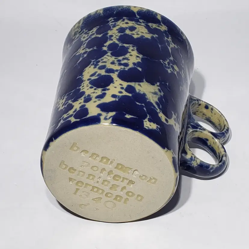 Vintage Bennington Potters Blue Agate Trigger Handle Mug Hand Crafted in Bennington, VT Stamped on bottom: bennington potters bennington vt 1340 dg 10 fl oz Measures: 4.5" x 3.25" x 4" Pre-owned, no chips or cracks. See Photos.