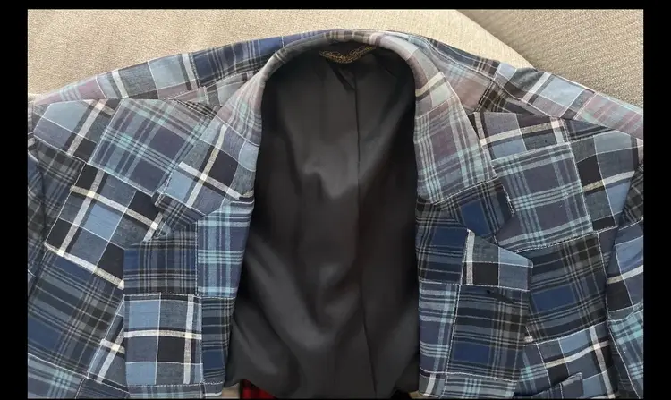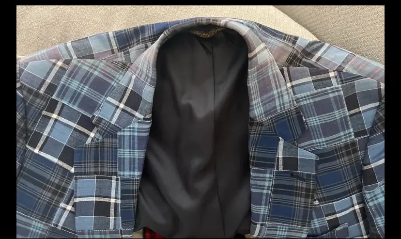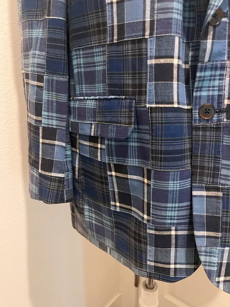 New without tags but has some fading on top part of shoulders and back of collar, see photos. Vintage Brooks Brothers Blue Indigo Madras Olde Patchwork Jacket 42R Preppy NEW NOS