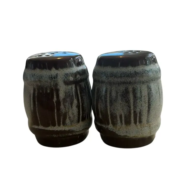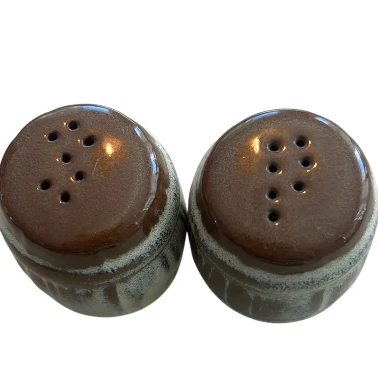 VTG brown drip glaze stoneware pottery salt and pepper shakers