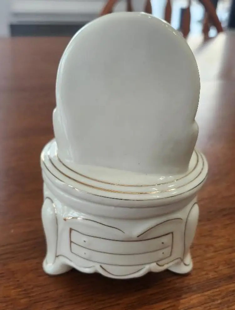 Vtg Ceramic Dresser Shaped Trinket Box with mirror pink painted flowers and gold trim 5 1/2" tall