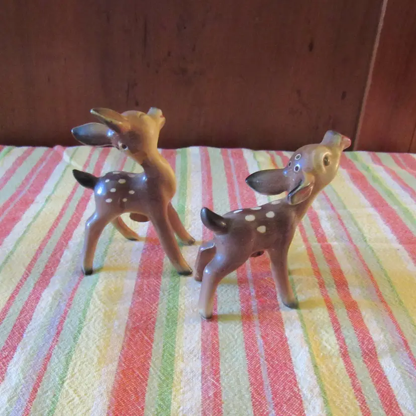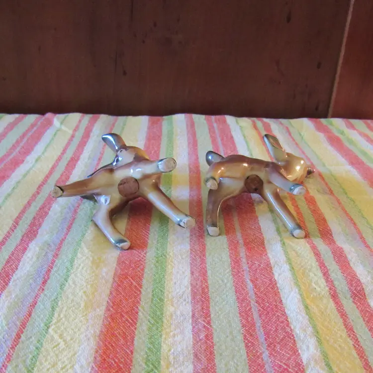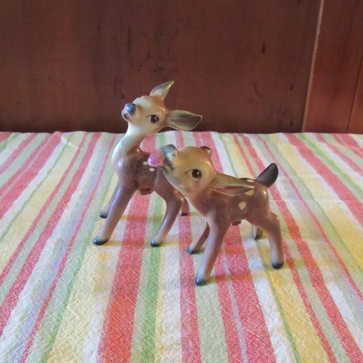 Vtg Ceramic Set of Deer Fawn Salt and Pepper Shakers 4" x 3" Marked Japan No issues