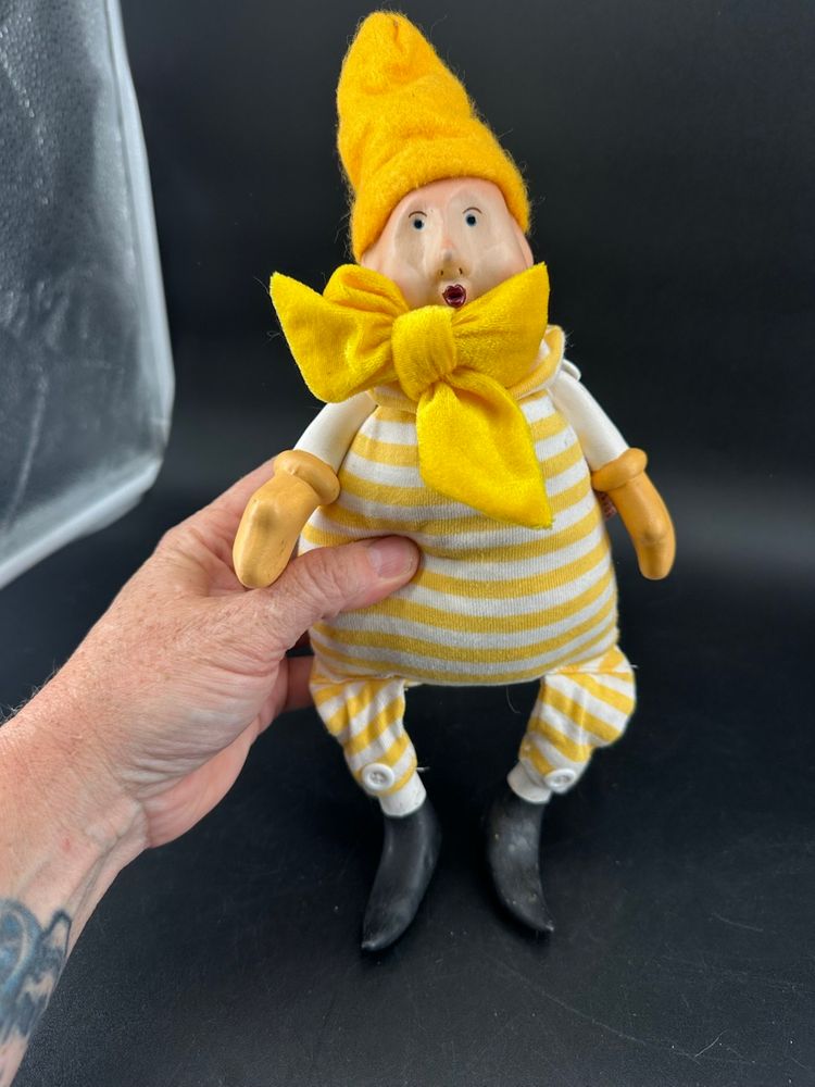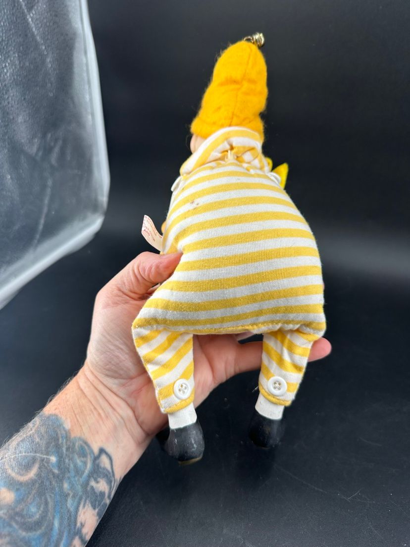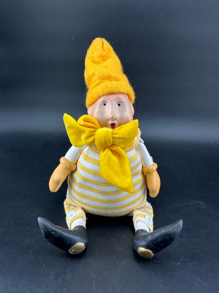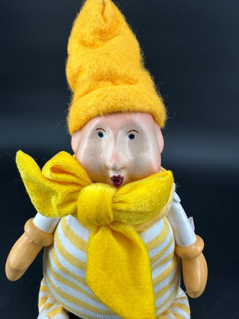 VTG Christmas Department 56 Hand Crafted Doll Yellow Striped Shelf Sitter(some Staining)