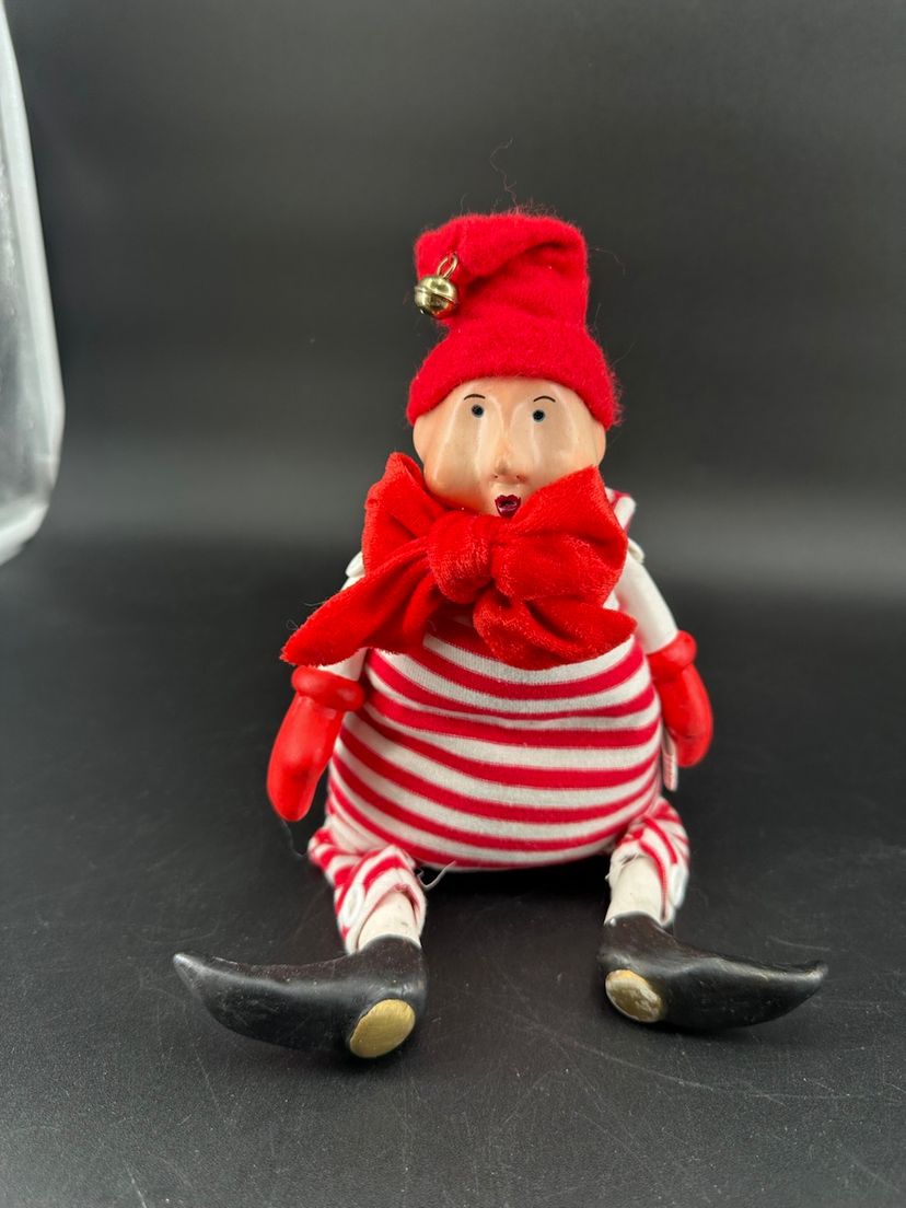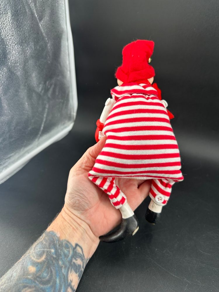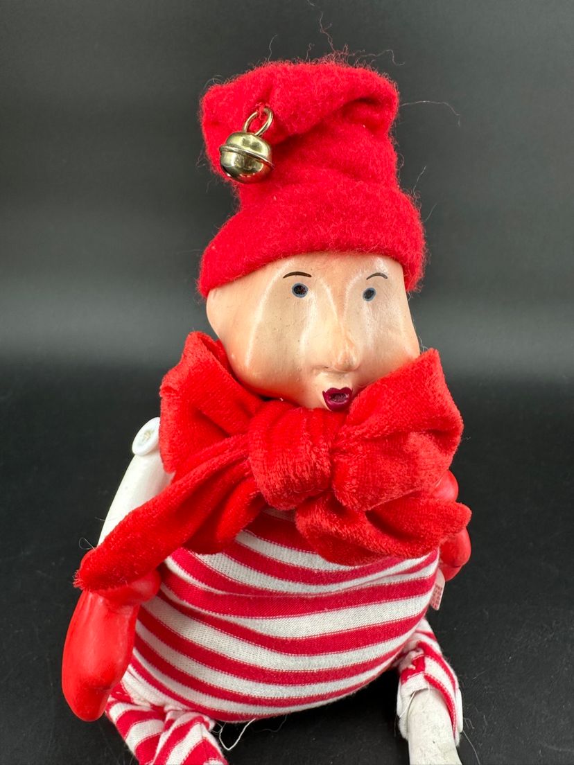 VTG Christmas Department 56 Hand Crafted Doll Red Striped Shelf Sitter