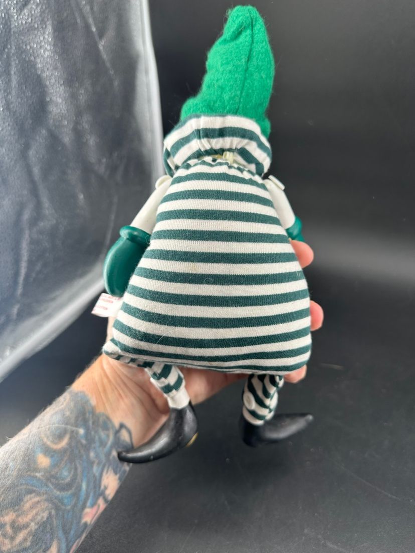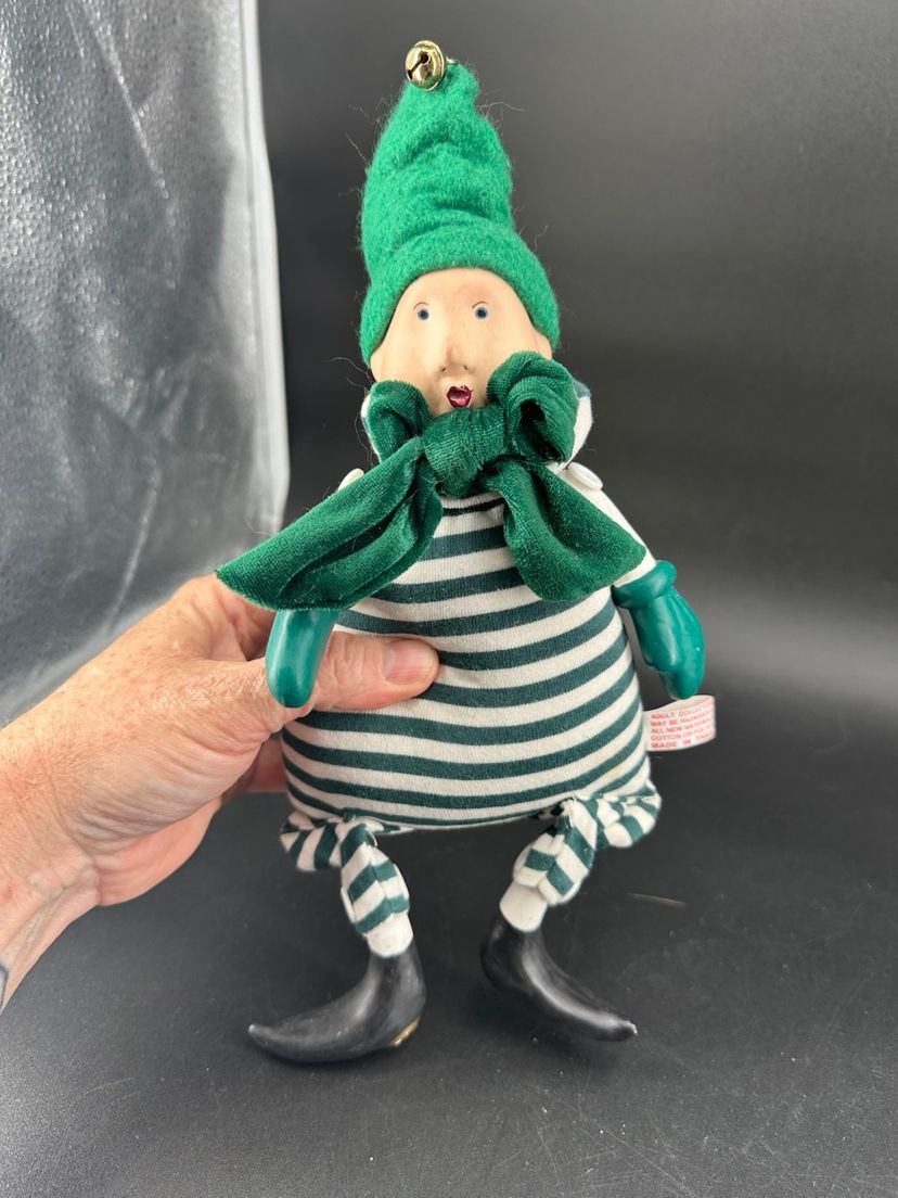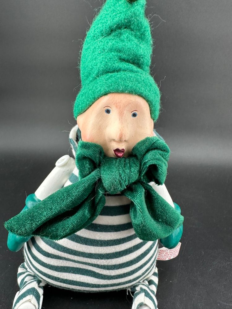 VTG Christmas Department 56 Hand Crafted Doll Green Striped Shelf Sitter