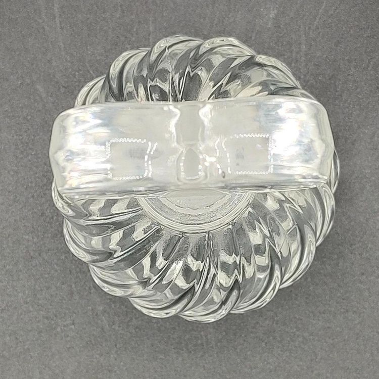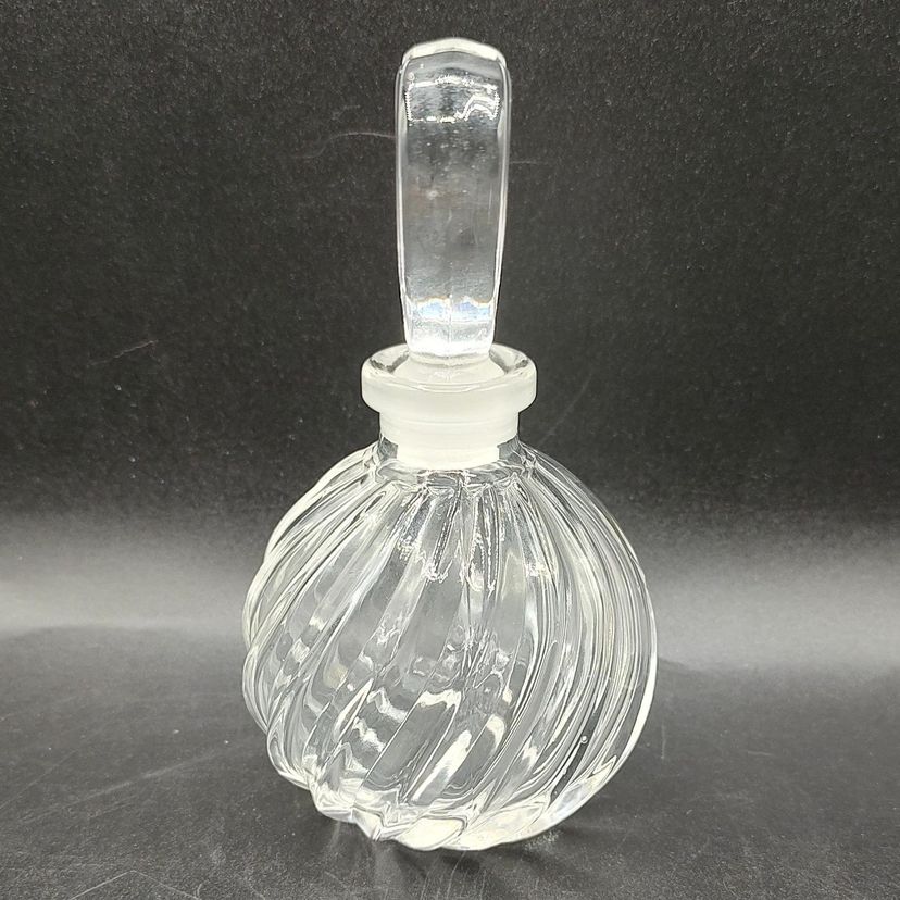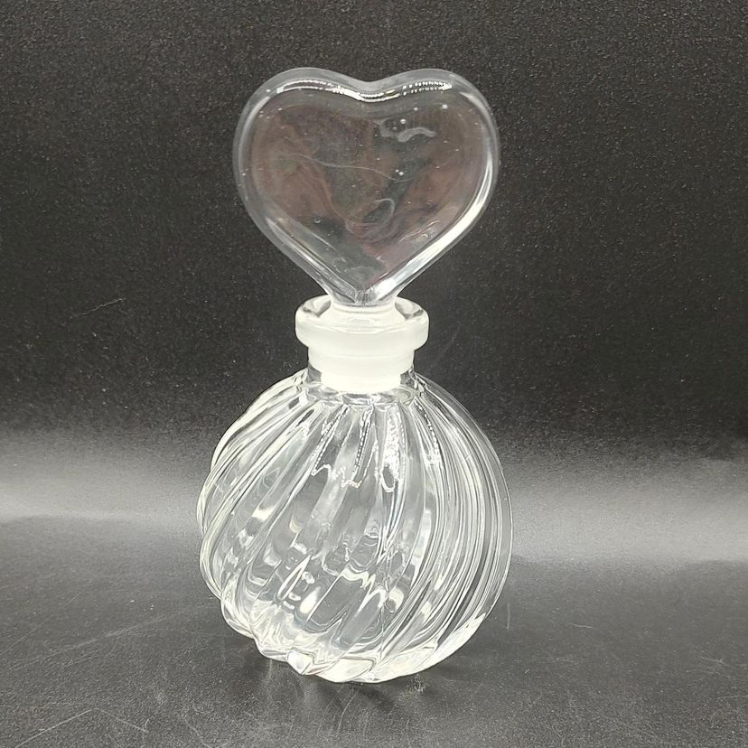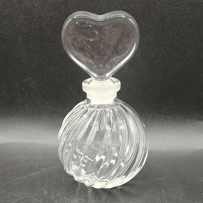 Vintage 1970's Clear Glass Perfume Bottle with Heart Shaped Stopper. Height with stopper 5?5" x diameter 3.5".