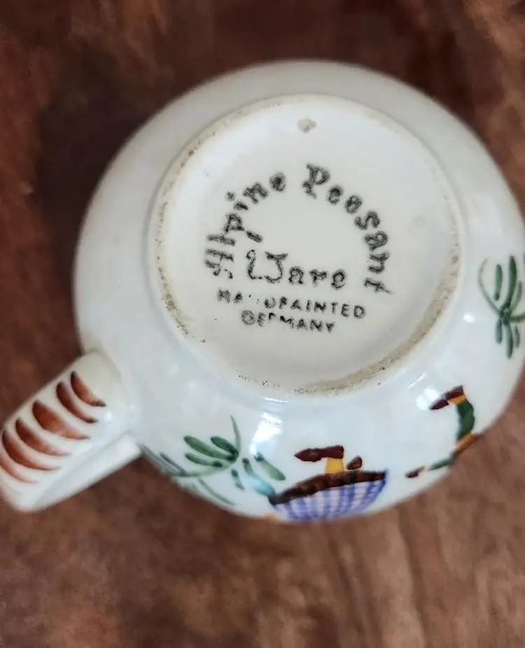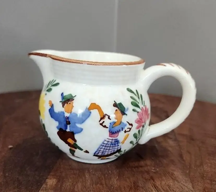 VTG Creamer "Alpine Peasant Ware", hand painted, AIR1 Collection, discontinued pattern dancing couple in traditional Swiss clothing with floral accents, made in Germany