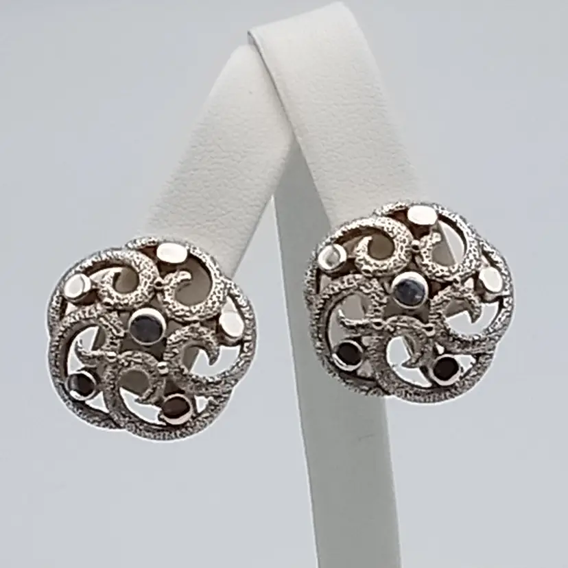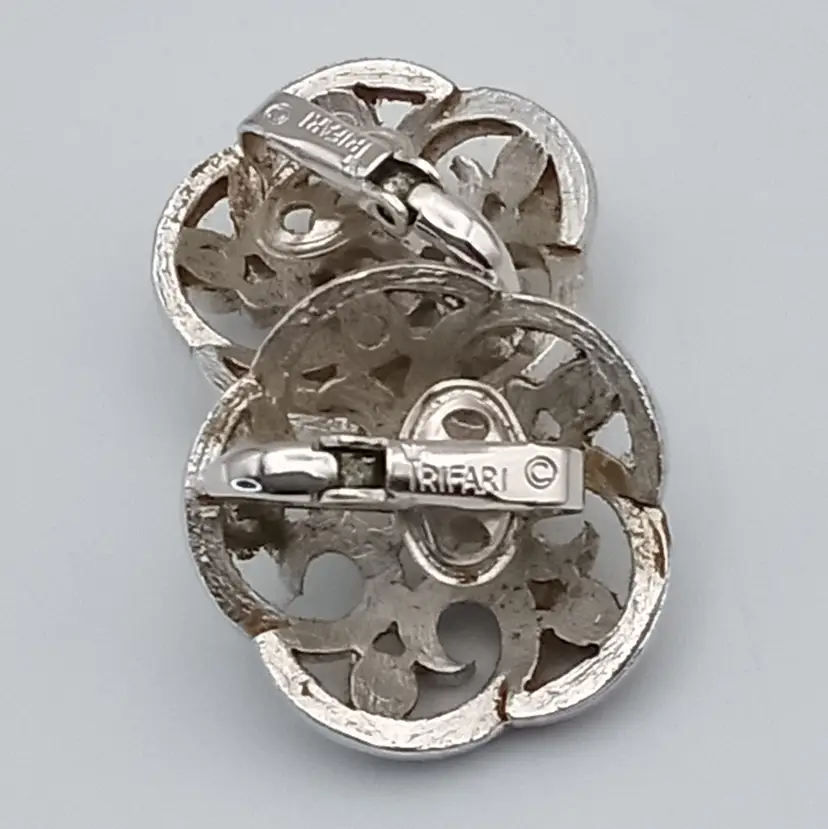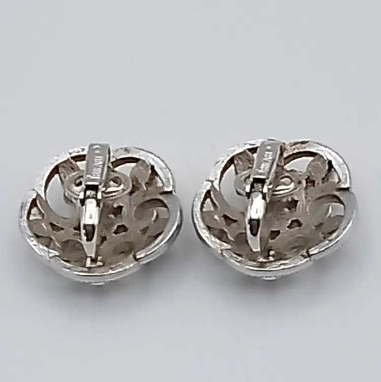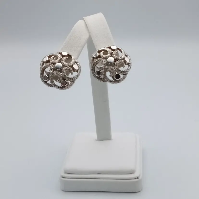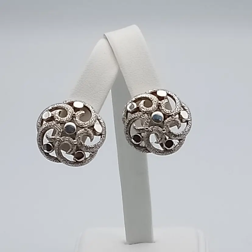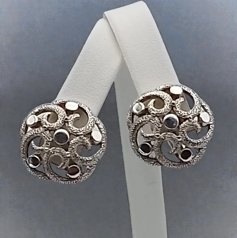 Vtg Crown Trifari Round Textured Swirl Silver Tone Clip On Earrings Classic