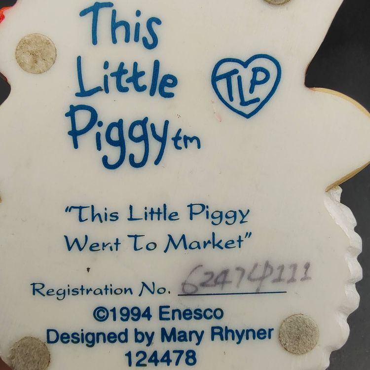 Vintage 1994 Enesco This Little Piggy "Went To The Market" by Mary Rhyner Figurine. Height 2.5" x width 2" x length 3". Made in China