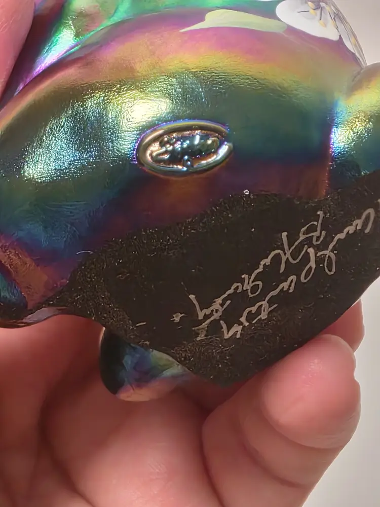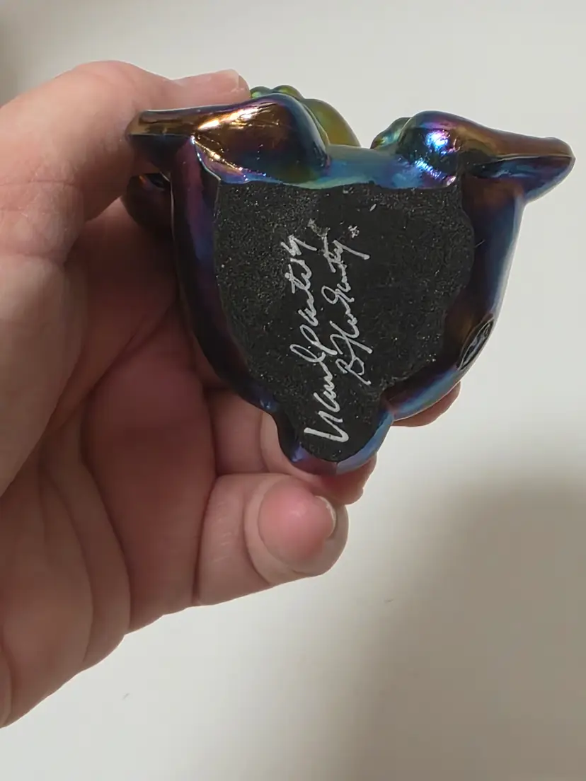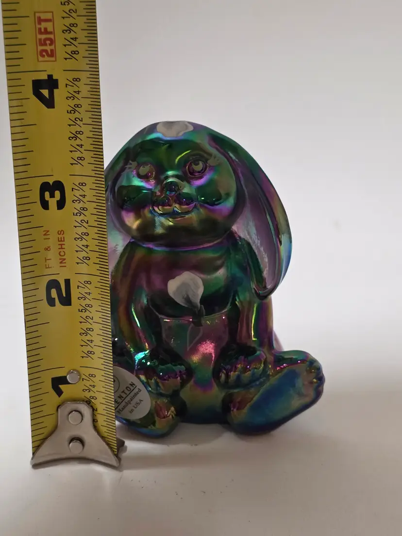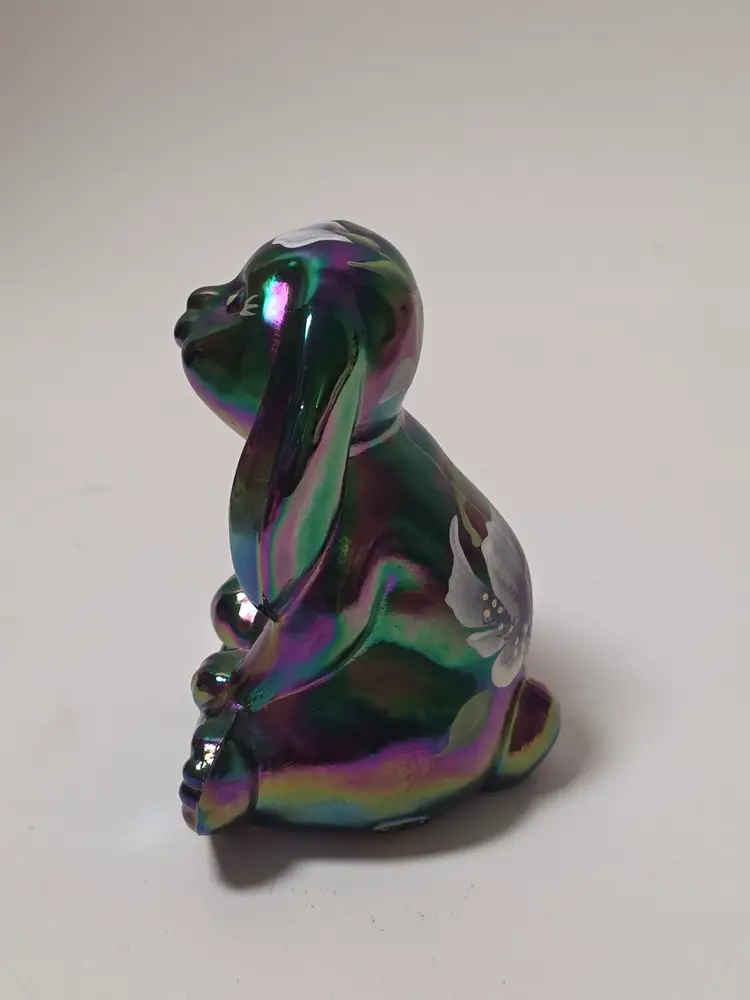 Vtg Fenton Carnival Glass Floppy Eared Bunny Hand Painted Rabbit Easter Glows