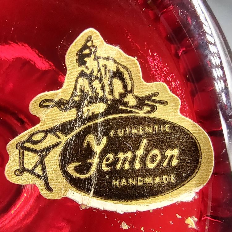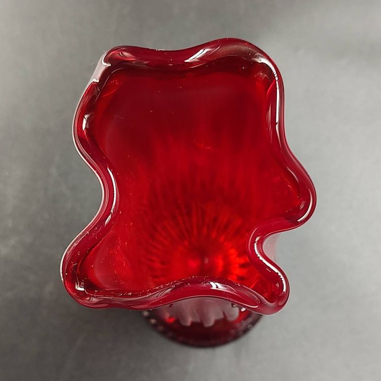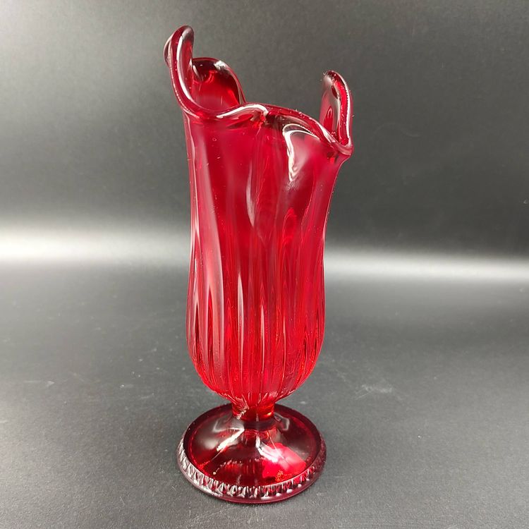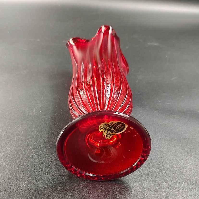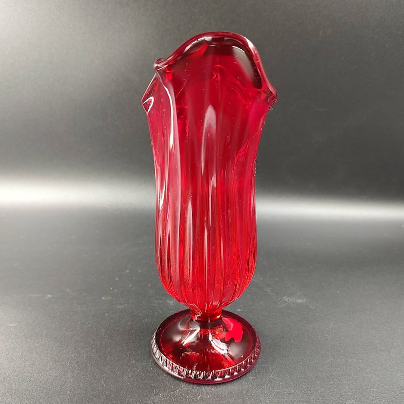 Vintage 1970's Fenton Red Art Glass Swung Vase. The bottom of this case glows. Height 7" x diameter 2". Made in the USA