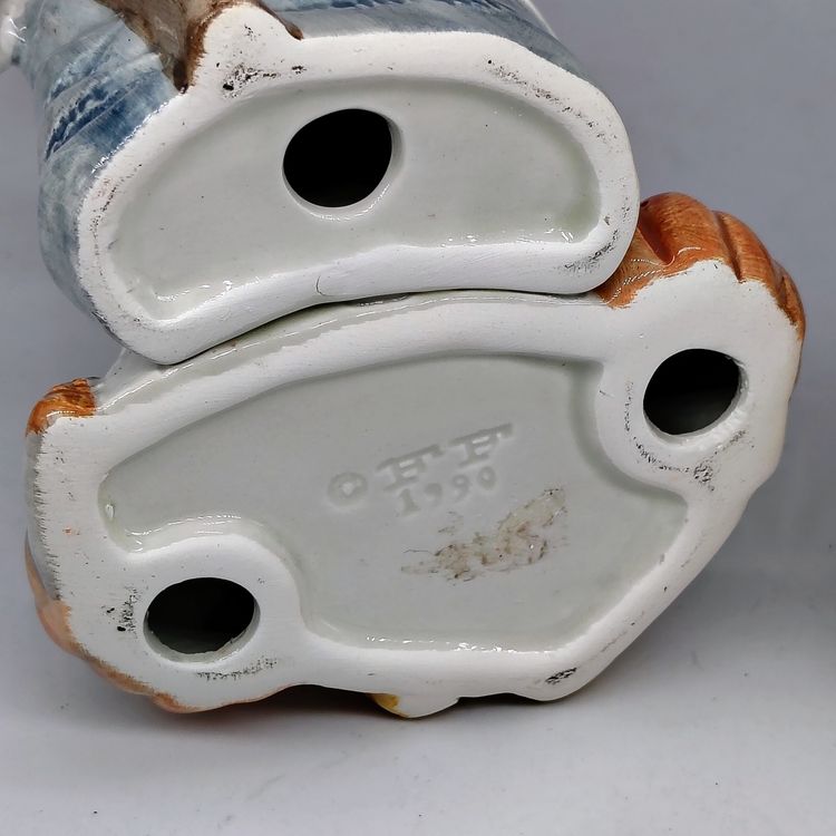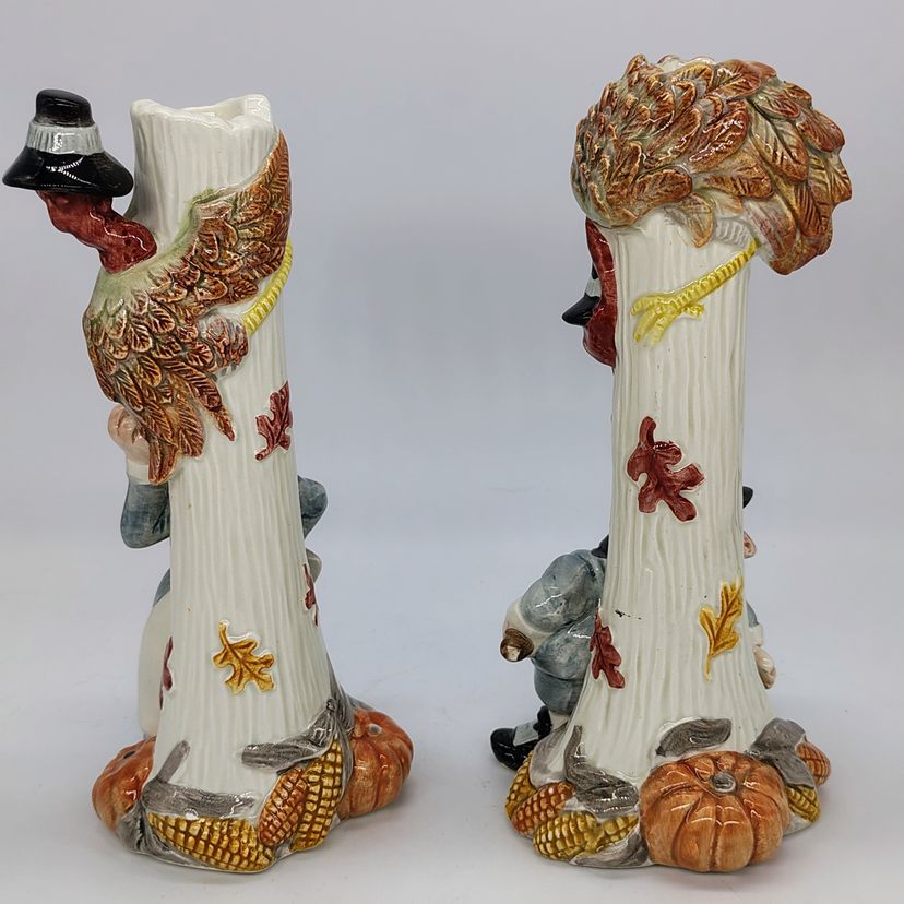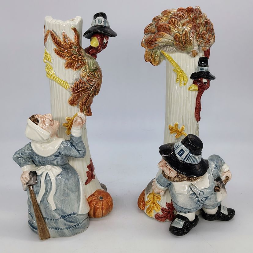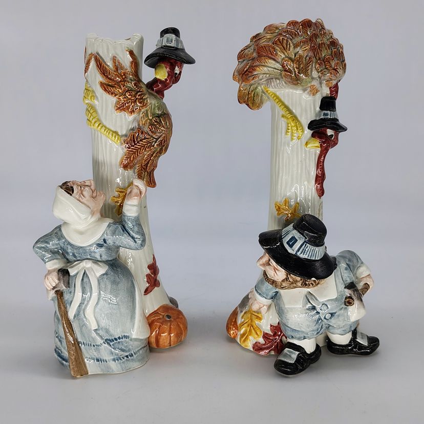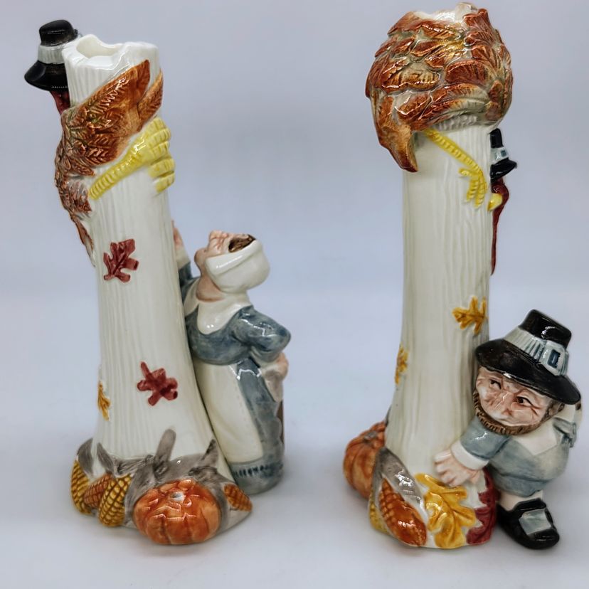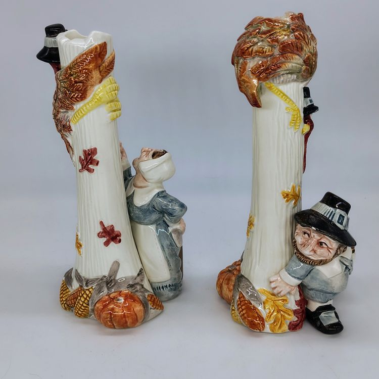 These are adorable vtg Fitz and Floyd candlestick holders. There are two flea bite chips on the mans hat as pictured.