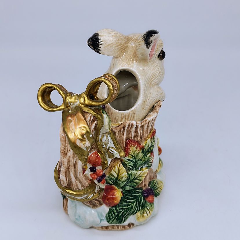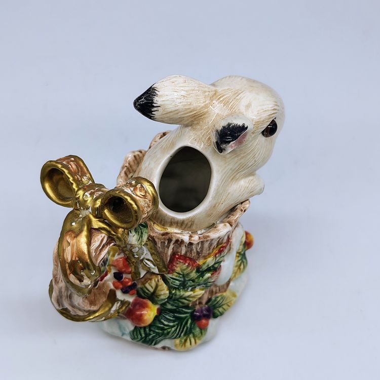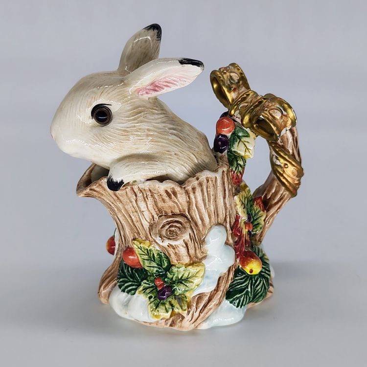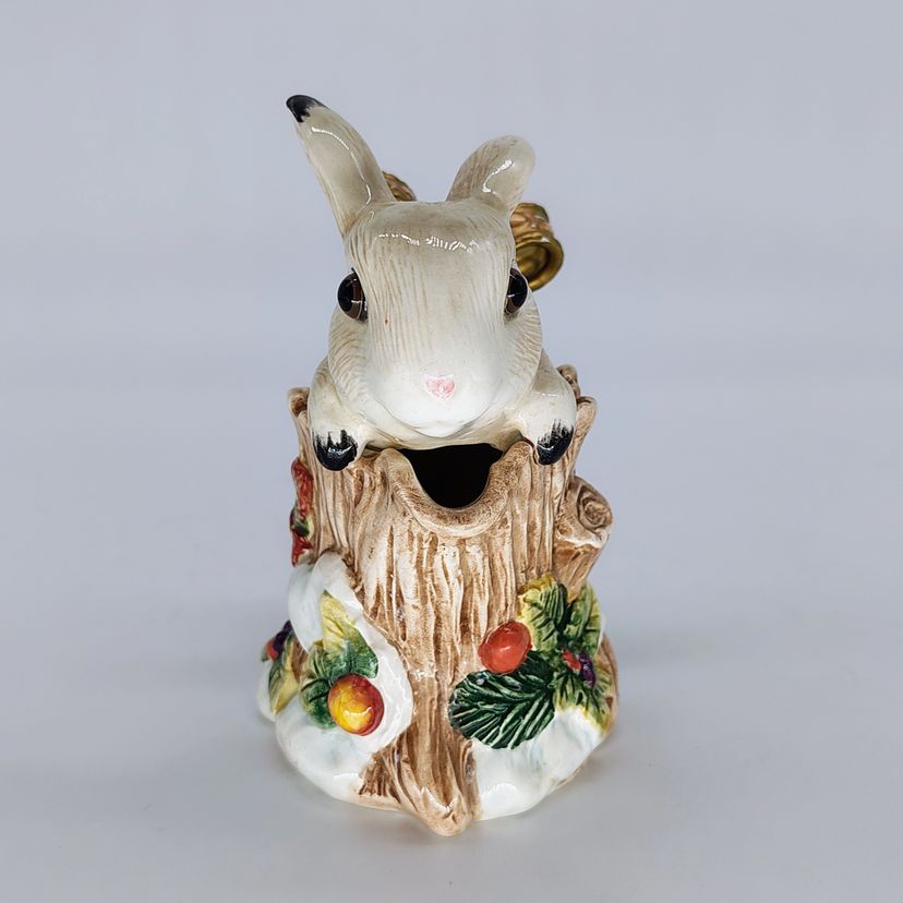 Snowy Woods Holiday Rabbit in a Tree Stump, No chips or cracks