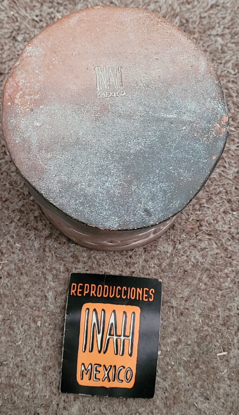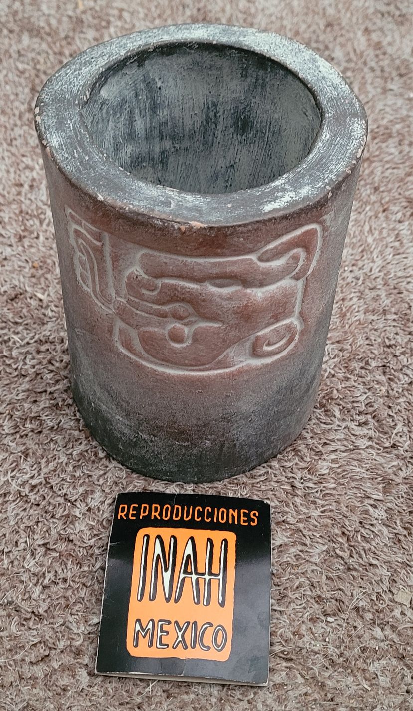 Vintage Thick Heavy Piece INAH MEXICO 0ld Mexican Clay PotteryBeautiful Pottery Water Jug Cylinder Vessel Vase or utensil holder Measures approximately 5 1/2" Tall and is 4 1/4" Please view all pictures carefully, as they are a part of the description, and email me with any questions.
