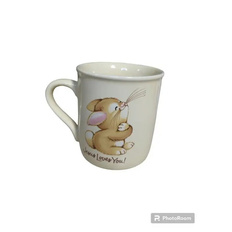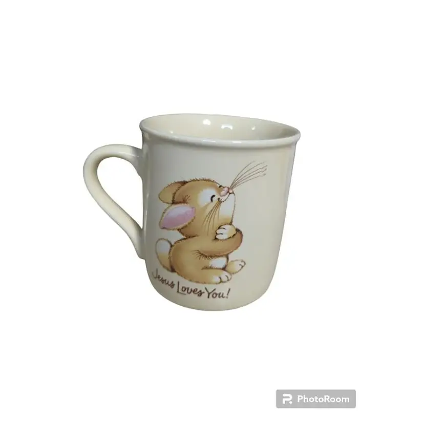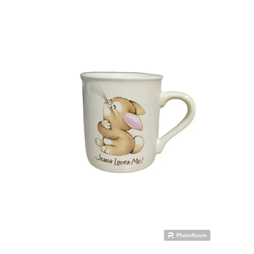 Vtg Jesus Loves Me Jesus Loves You Bunny Rabbit Mug 8 oz Hallmark Mug Mates Measures approximately 3 1/2" h/3" d/4 1/2" wide including handle Made in Japan Good Condition - No Chips or Cracks