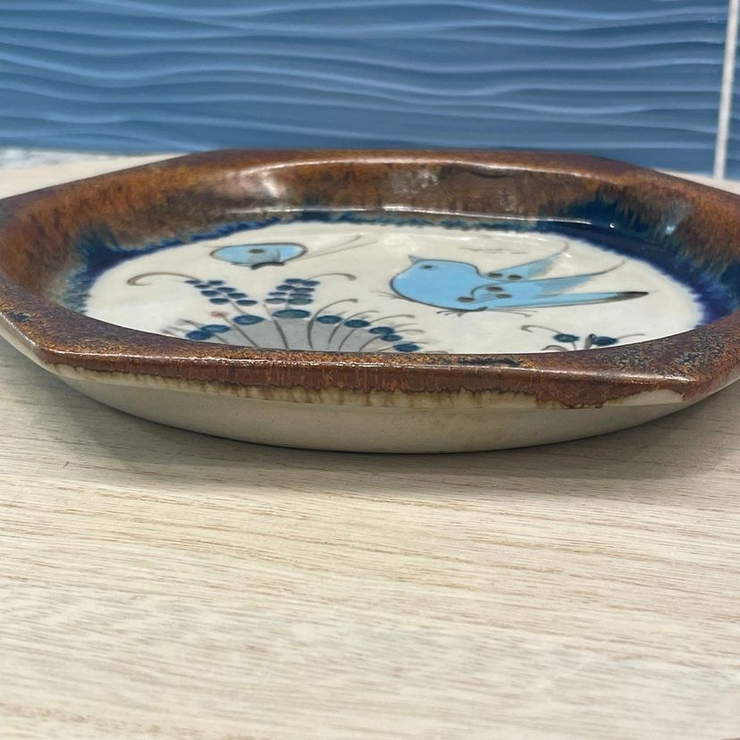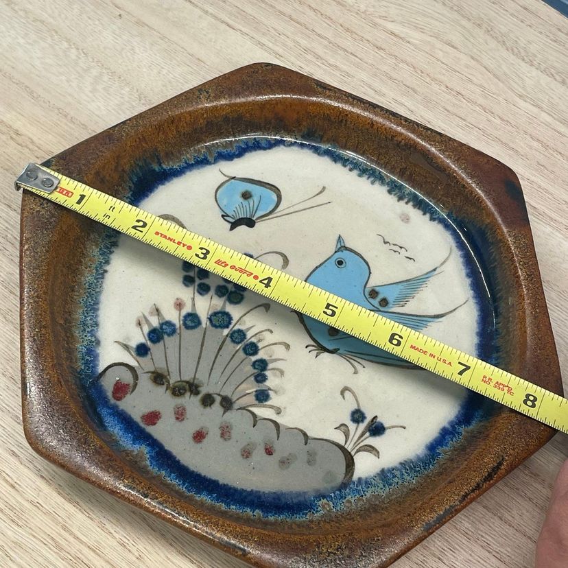 Nice preowned plate with pretty bird butterfly and floral hand painted plate. Signed Ken Edwards. No chips or cracks. See all images for more images and full details. Mexico