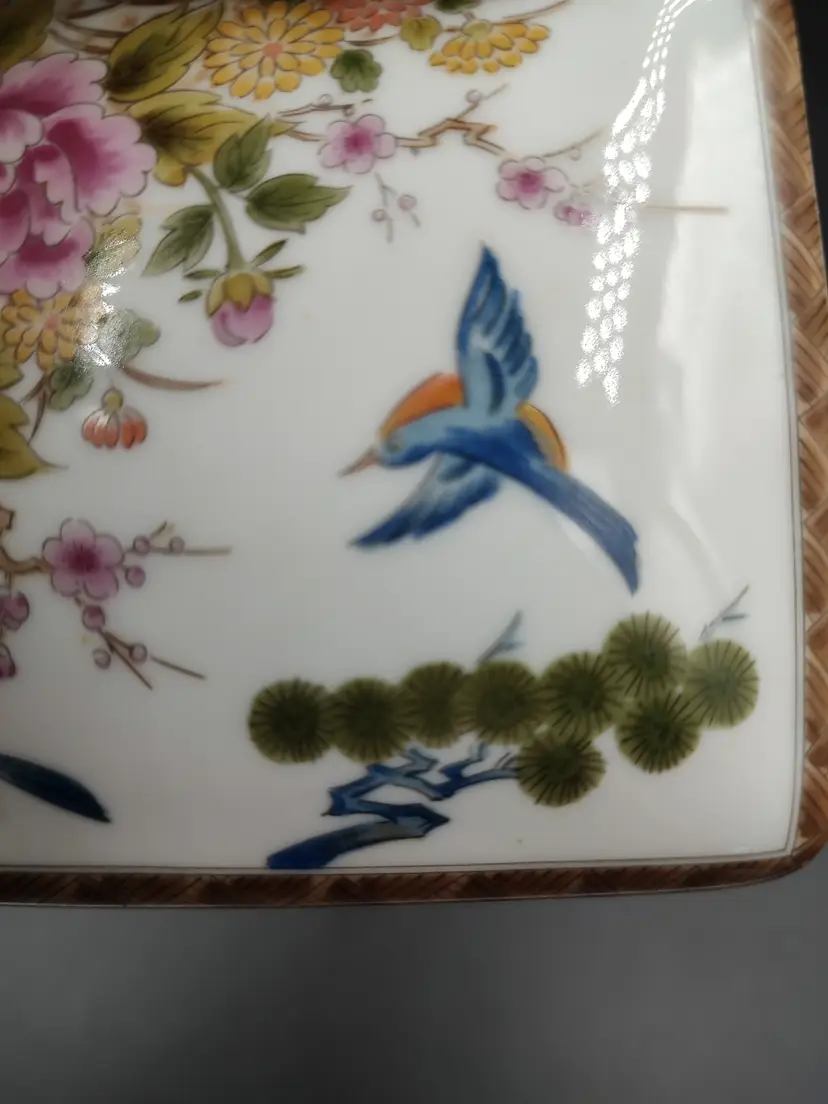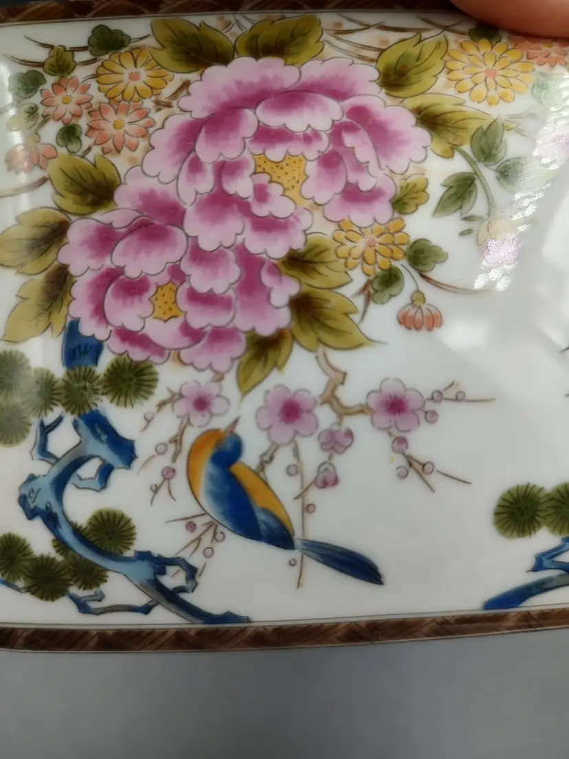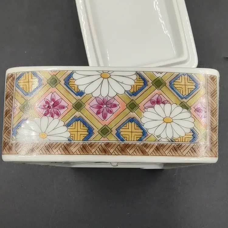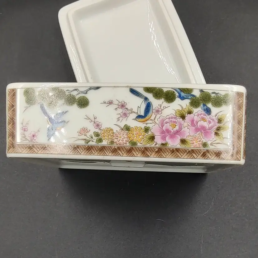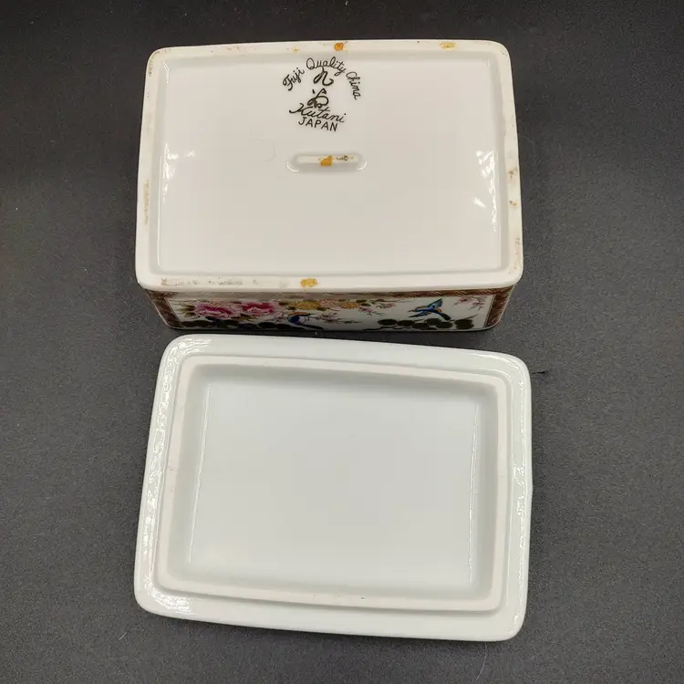 Vintage 1940-1960 Kutani Fuji Quality China Trinket Box With Bird and Flower Motif. Height 1.5" x width 3.5" x length 5". Made in Japan