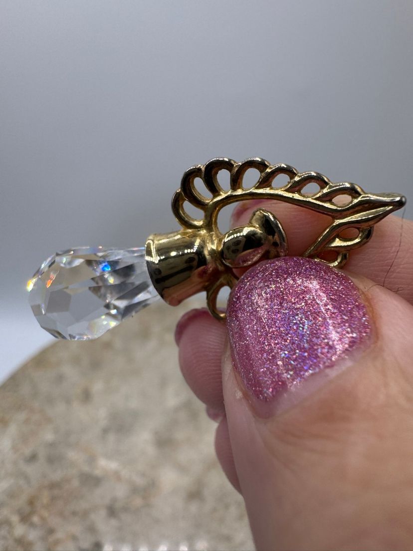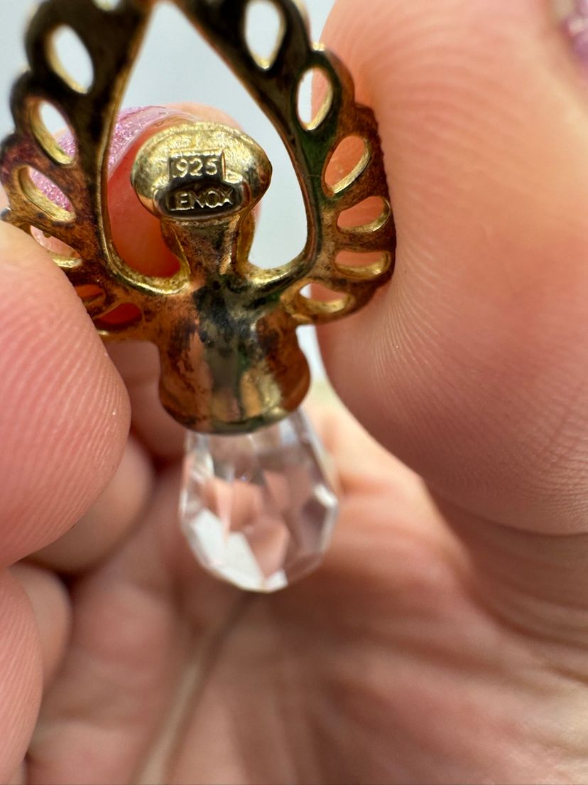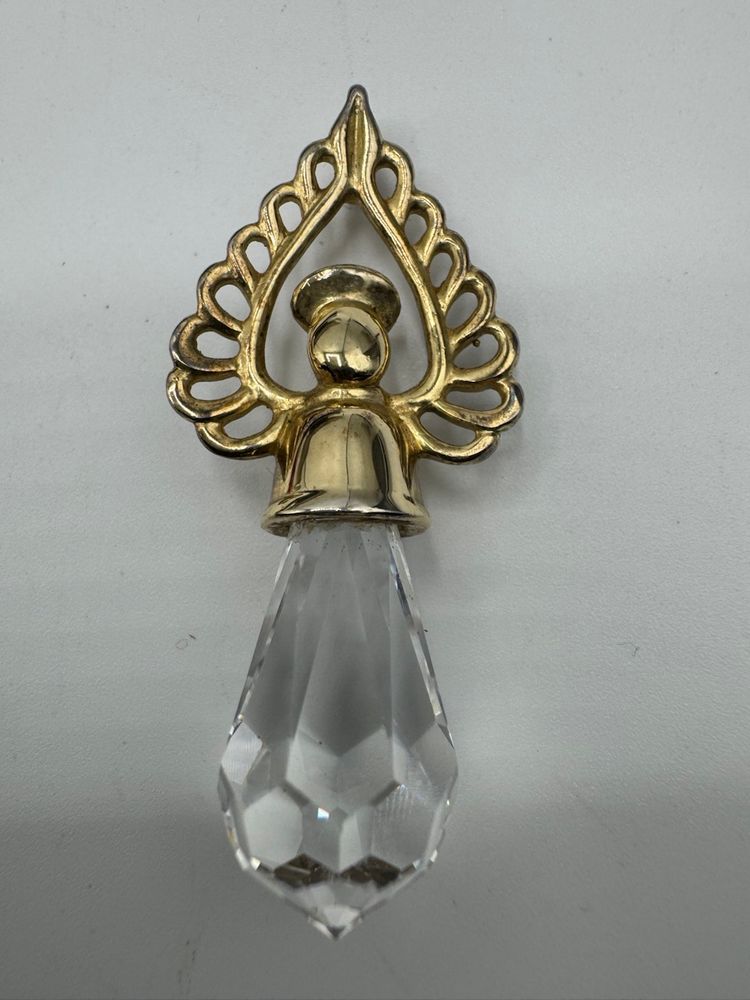 Sparkly beautiful LENOX Gold Over Sterling Silver Angel Charm Pendant Faceted Crystal Glass. Great condition. No chips or cracks. Tiny bit of wear. Hardly noticeable. Please see photos. Measures 2” X 3/4”