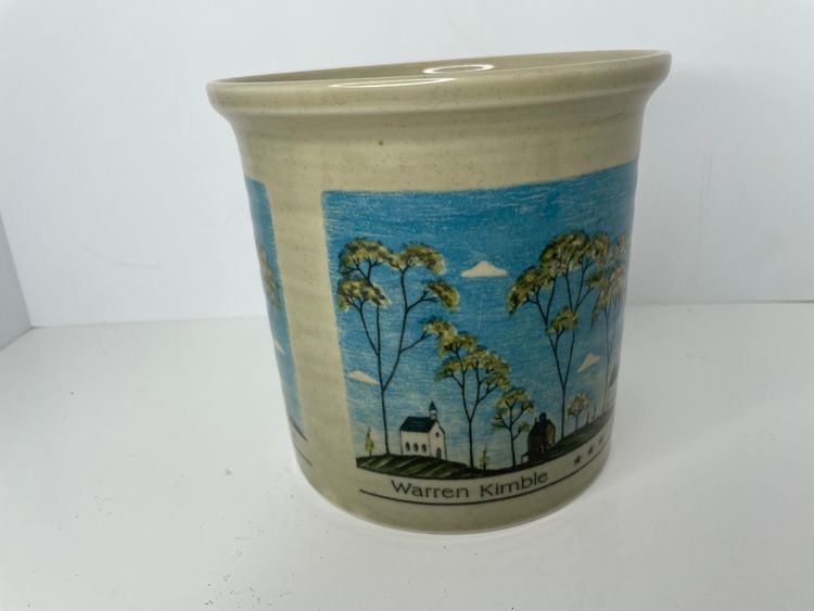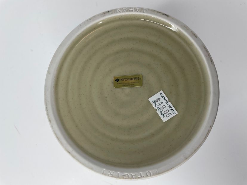 With a model name of Warren Kimble and original production in Japan during the 1990s, this crock is a licensed production of an original Otagiri design. The crock did not come with a lid and stands 5.5 inches tall. It's an ideal collectible for those who admire vintage kitchen storage and organization items.