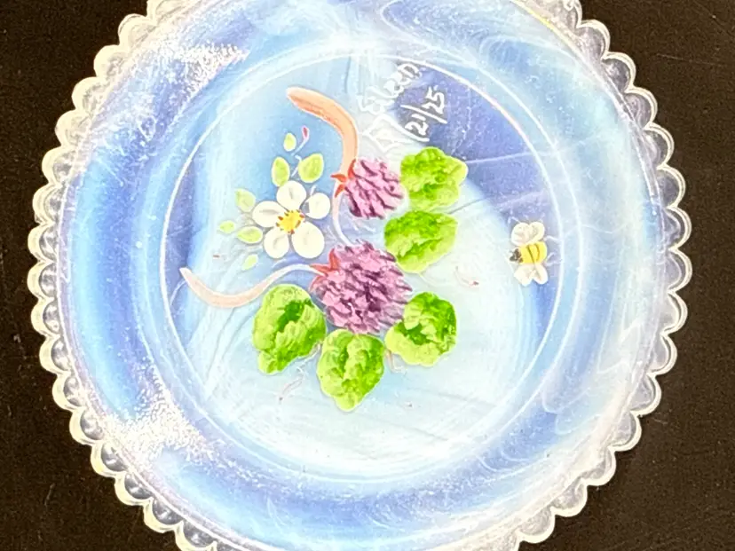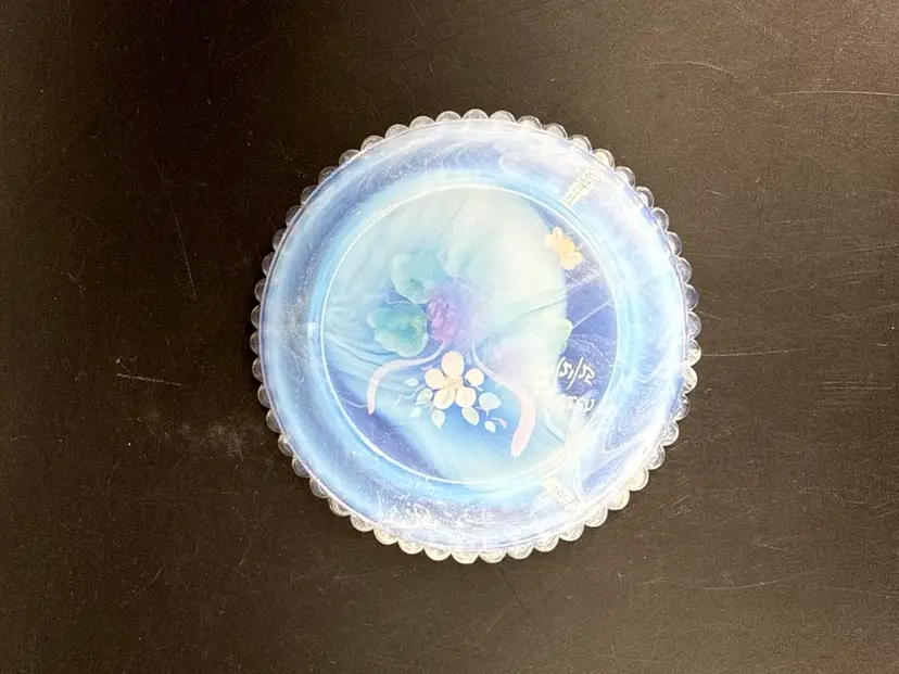 It measures 3.5" in diameter and is in excellent condition. There are no cracks, breaks, chips or repairs. (See photos).