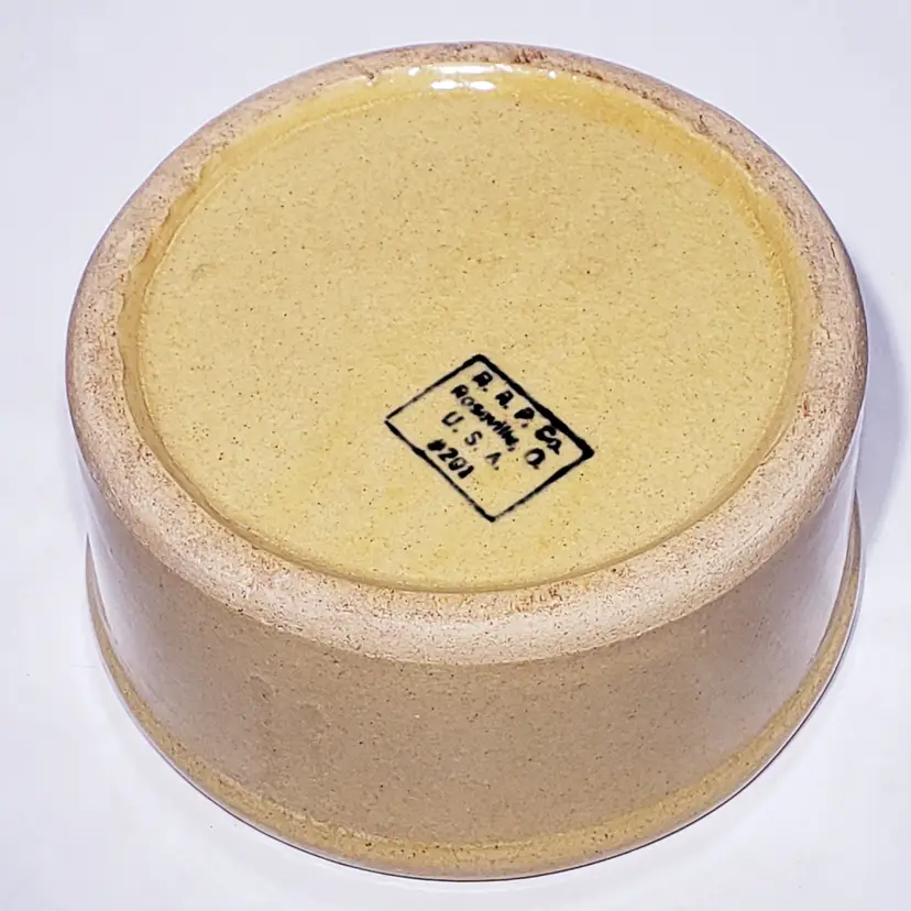VTG Roseville Ransbottom RRP Co 6” Pottery Stoneware KITTY Crock Bowl Dish #201 Measures: 6" x 6" x 3" Pre-owned, no chips or cracks. See Photos.