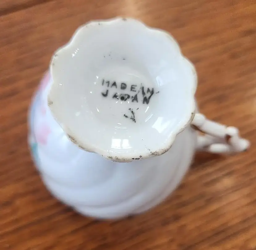 VTG Royal Albert Old Country Roses Bone China Teacup with a burgundy and pink rose motif trimmed in gold with scalloped rim and foot, made in Japan