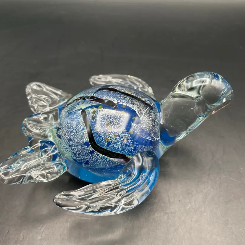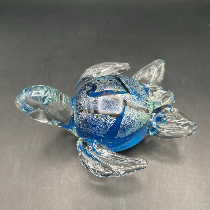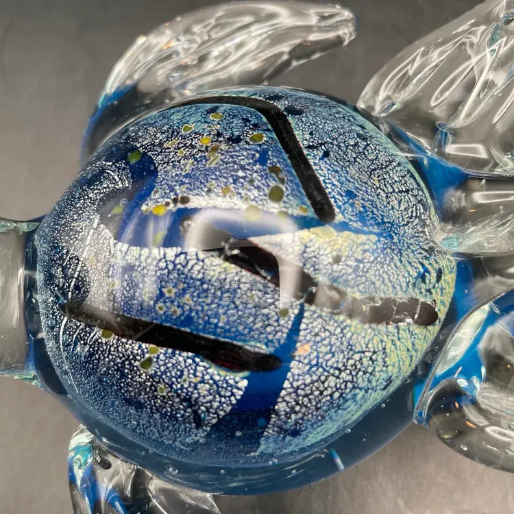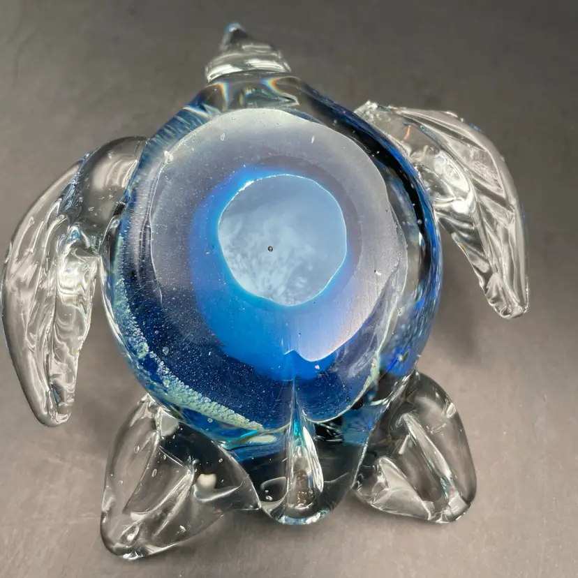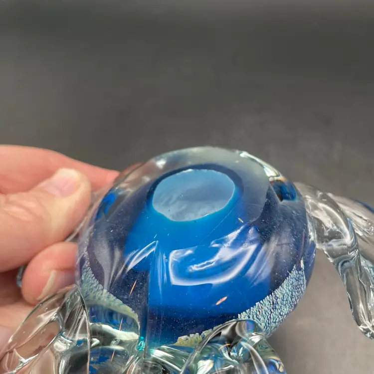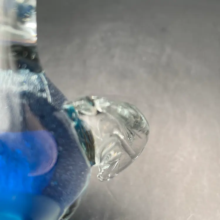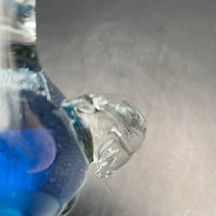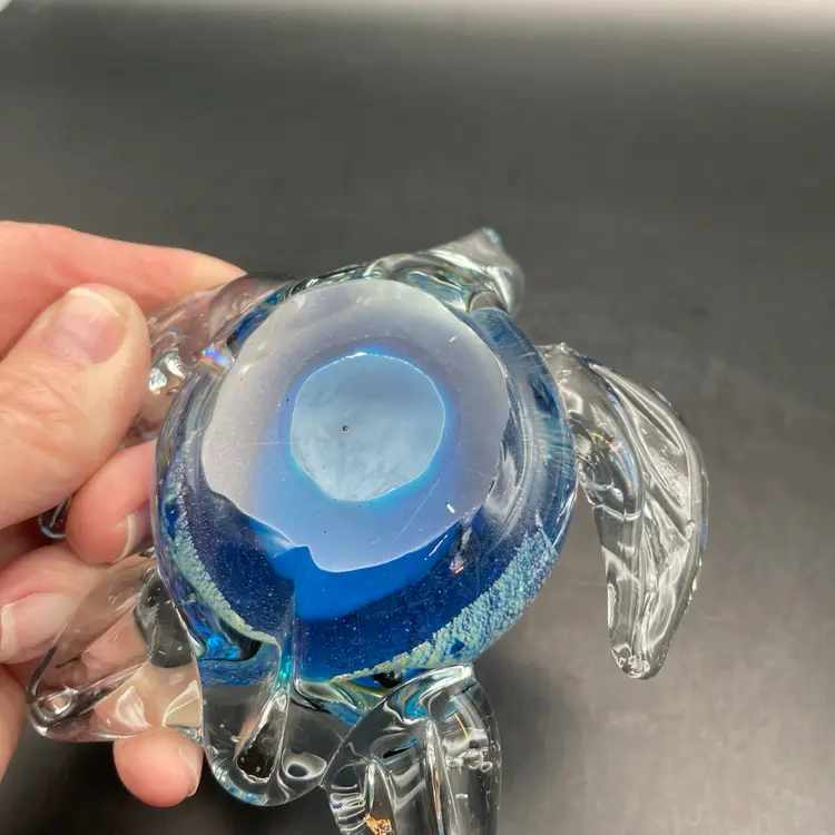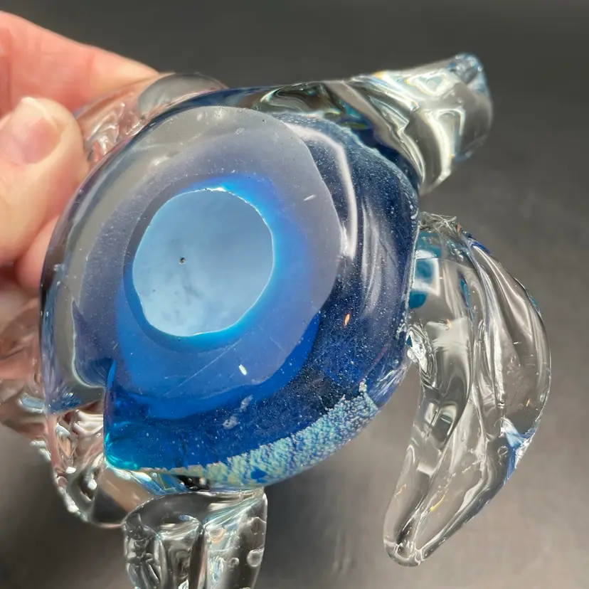 Approximately 5” long x 4” wide. A couple of divots around the bottom polished edge by the manufacturer and a rough edge above the front fin again by the manufacturer. No chips or cracks.