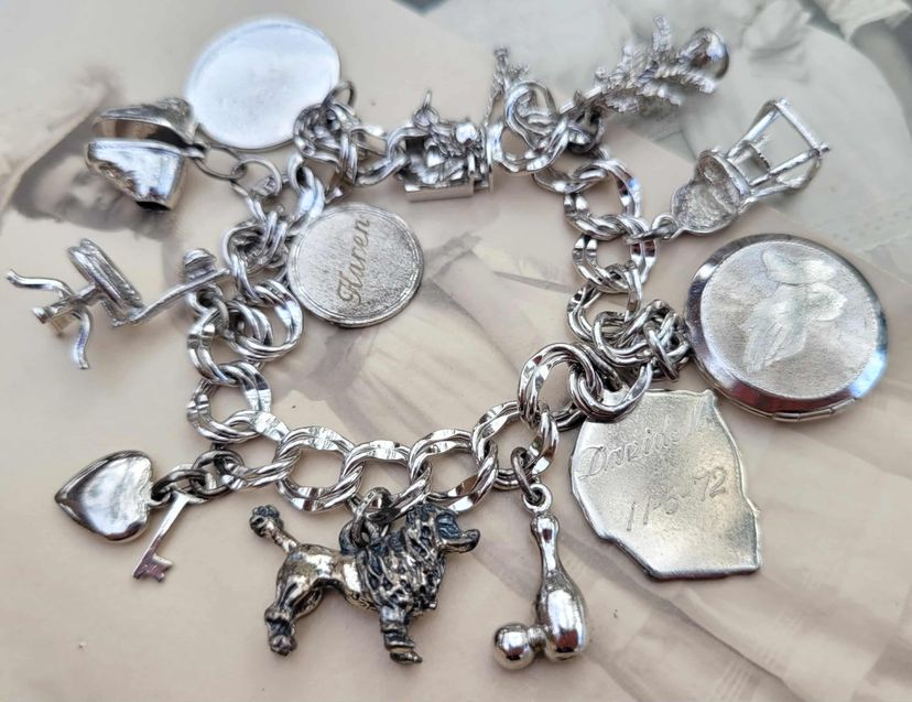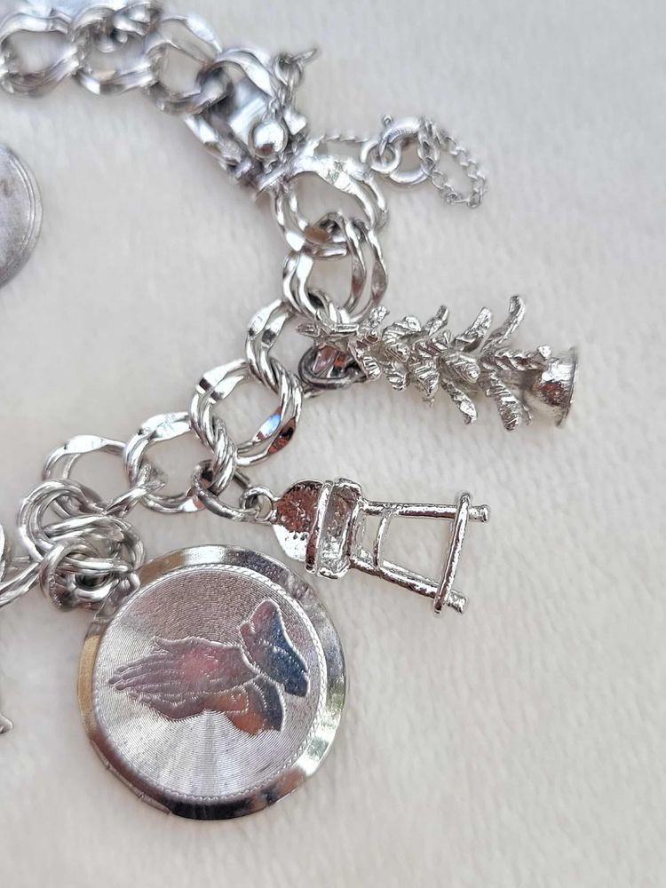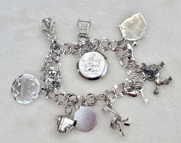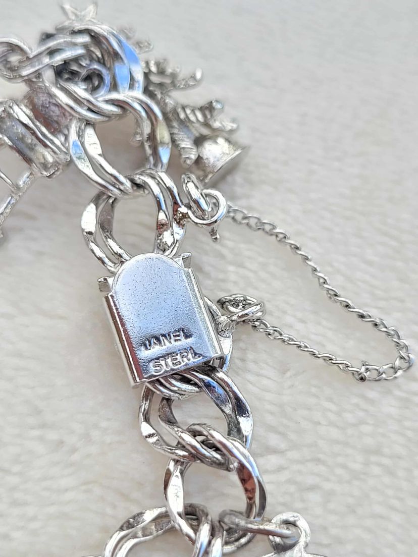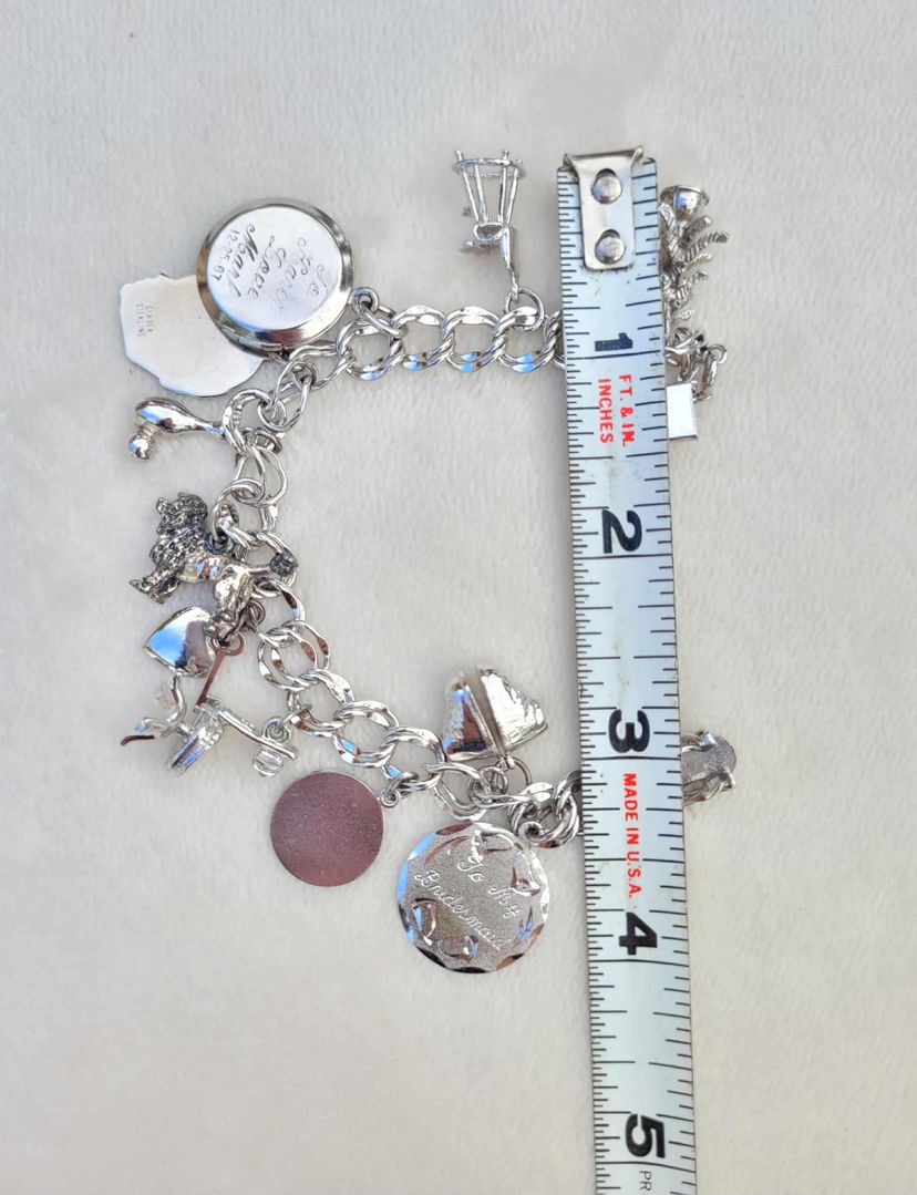Adorable vintage sterling silver charm bracelet, with a variety of charms. This comes from an estate and is circa 1960s/70s, and is just over 37 grams in weight. It is in good condition, please see pictures for details and measurements.
