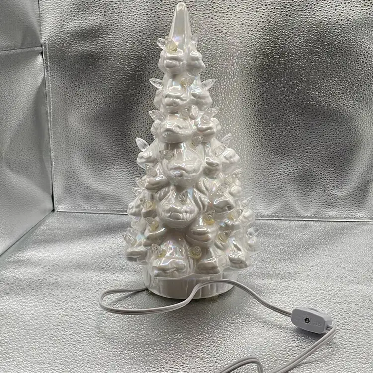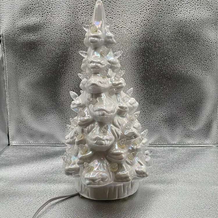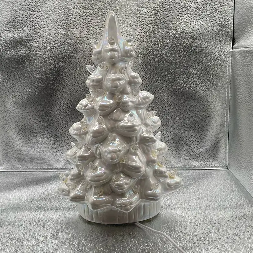 One piece 12” tall. More of an oval shape than round. 8” wide x 6” deep. No chips, no cracks.