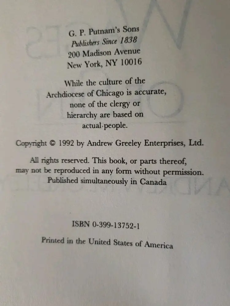 An out of print bookclub from 1992. It's a horror book written by a priest.