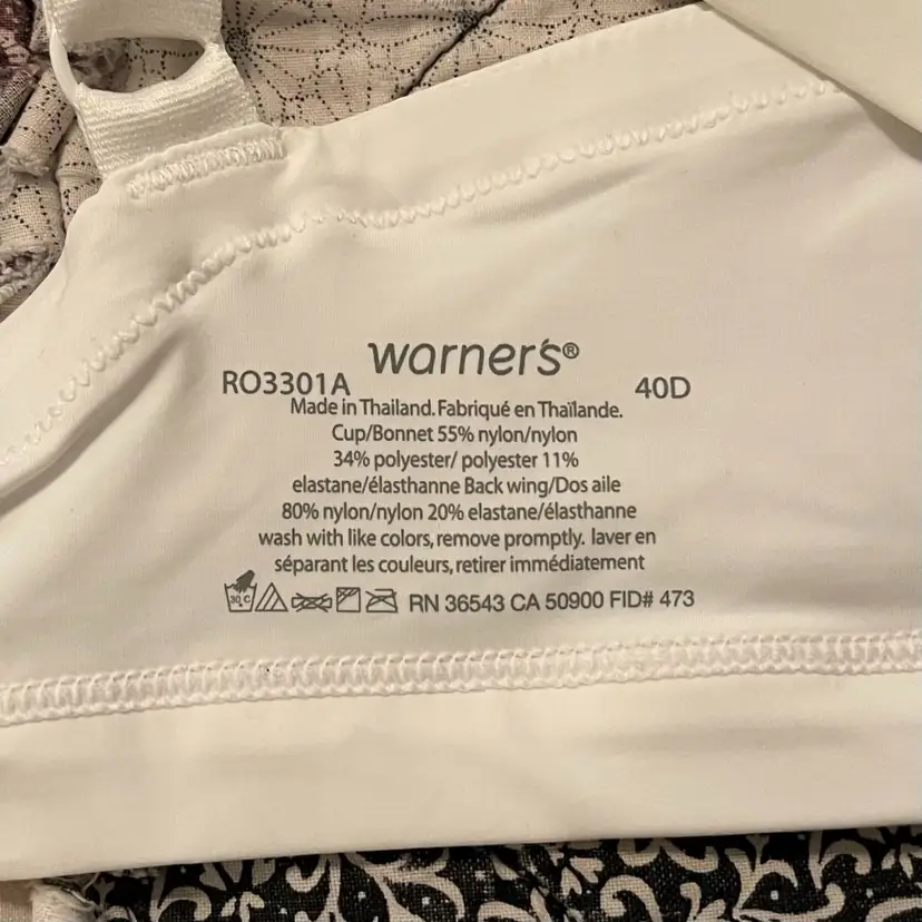 Gently used Warner’s brand lace bra with padding. Size 40D.