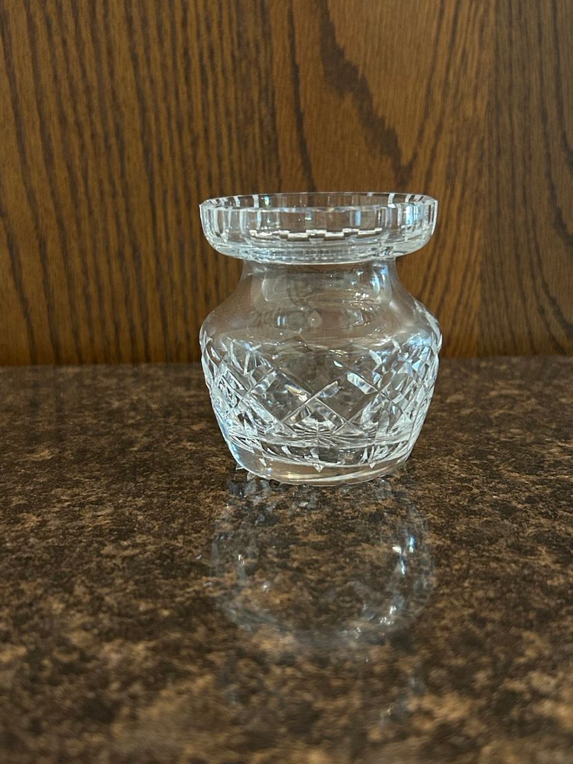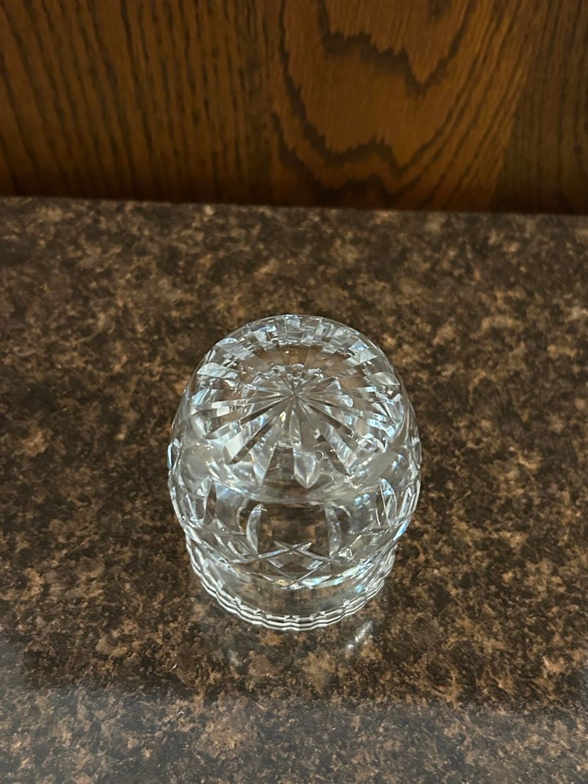 Beautiful crystal condiment jar. Measures 3 inches tall. Missing lid.