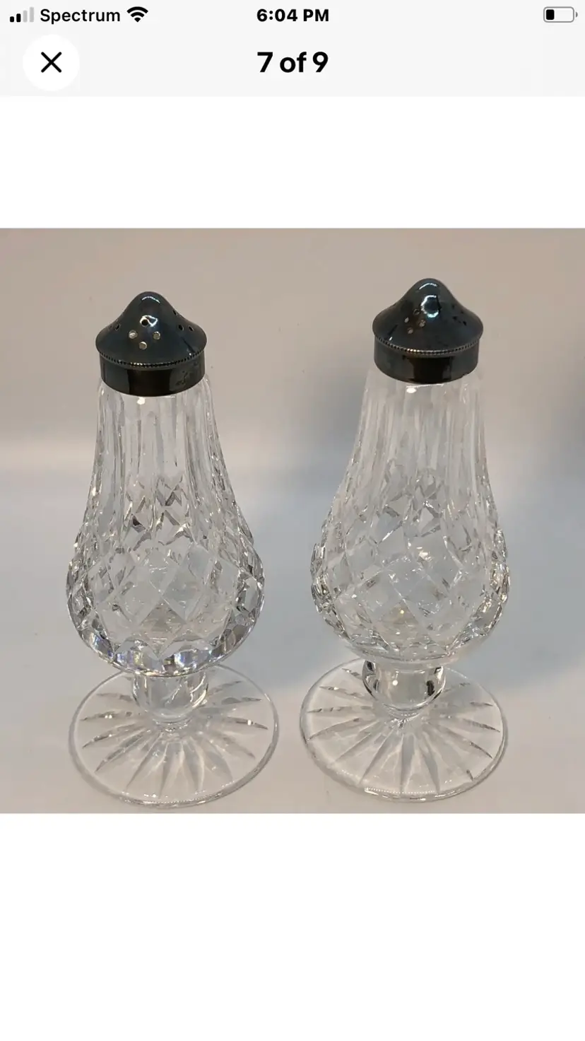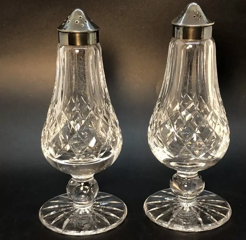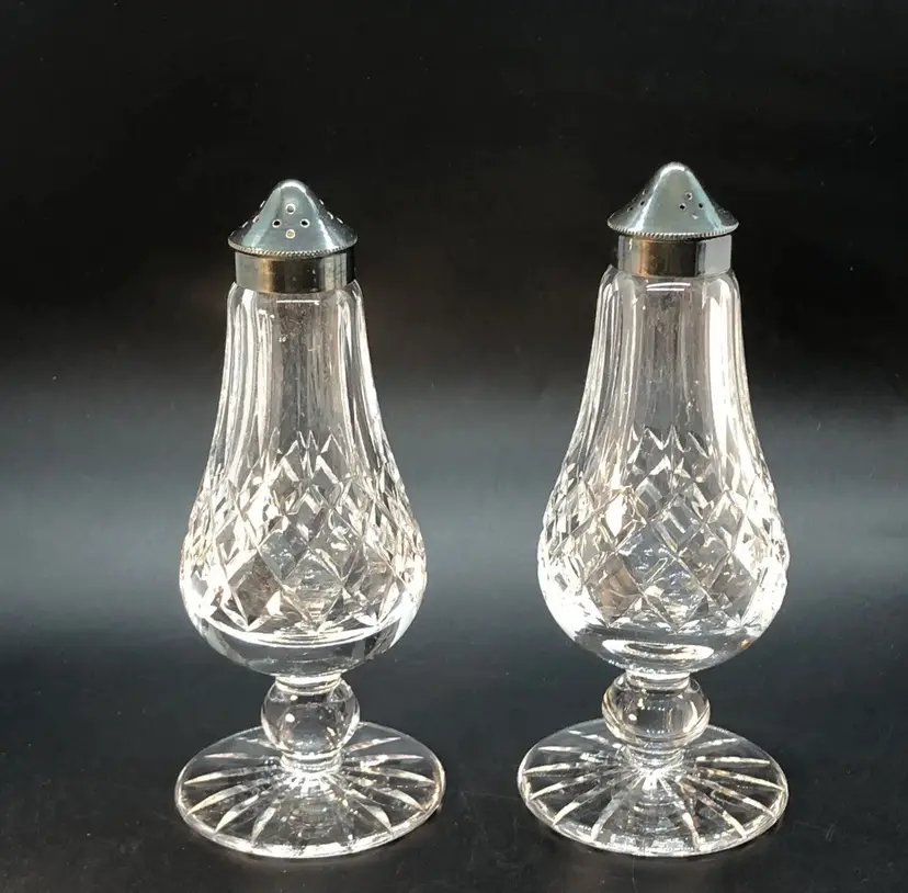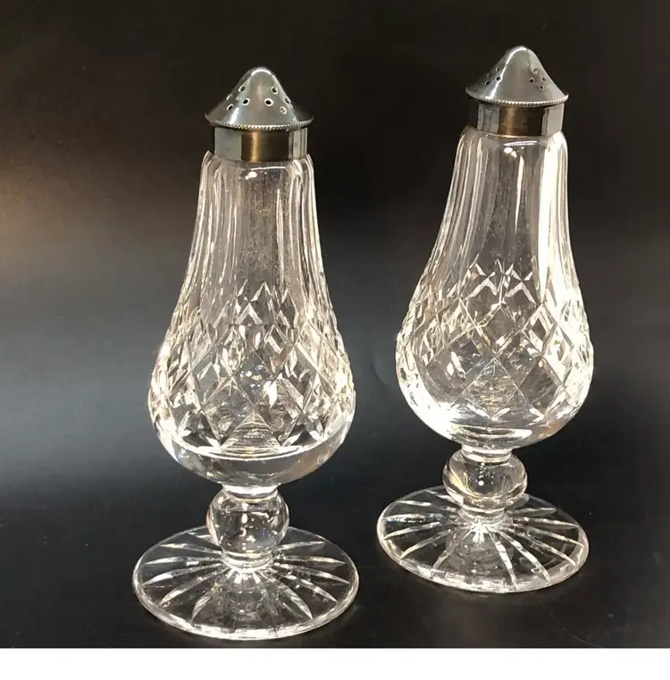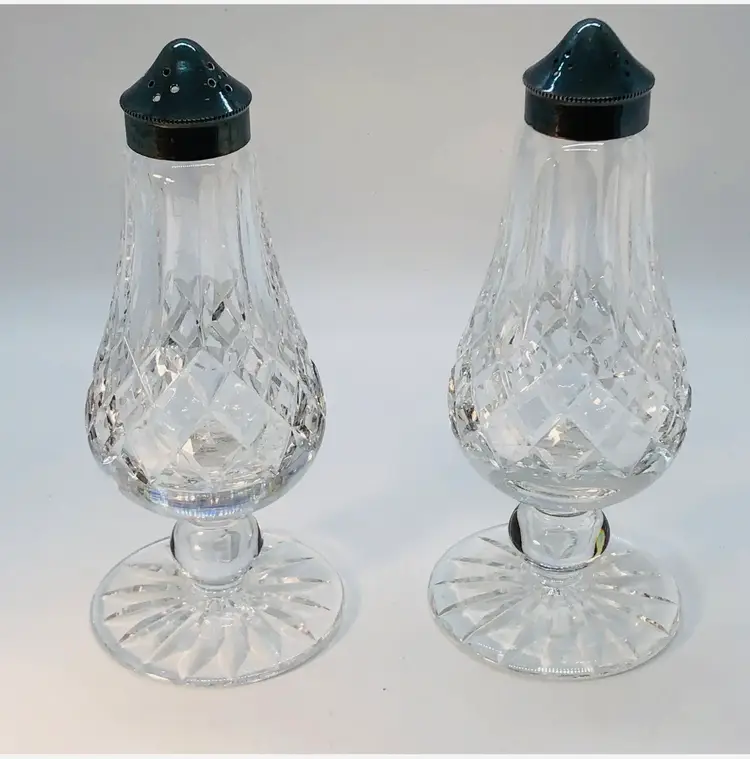 Enhance the elegance of your dining experience with these exquisite Waterford Crystal Lismore salt and pepper shakers. With their intricate footed design and impressive 6 1/4" height, they make a stunning addition to any table setting. Crafted from high-quality crystal material, these shakers boast an impressive 16 holes for easy and even salt and pepper distribution. Their beautiful clear color adds a touch of sophistication to any dining occasion. The impressed backstamp ensures authenticity and quality. Weighing 1lb 6oz, these shakers are perfect for adding a touch of glamour to your dining experience.please check photos. Thank you