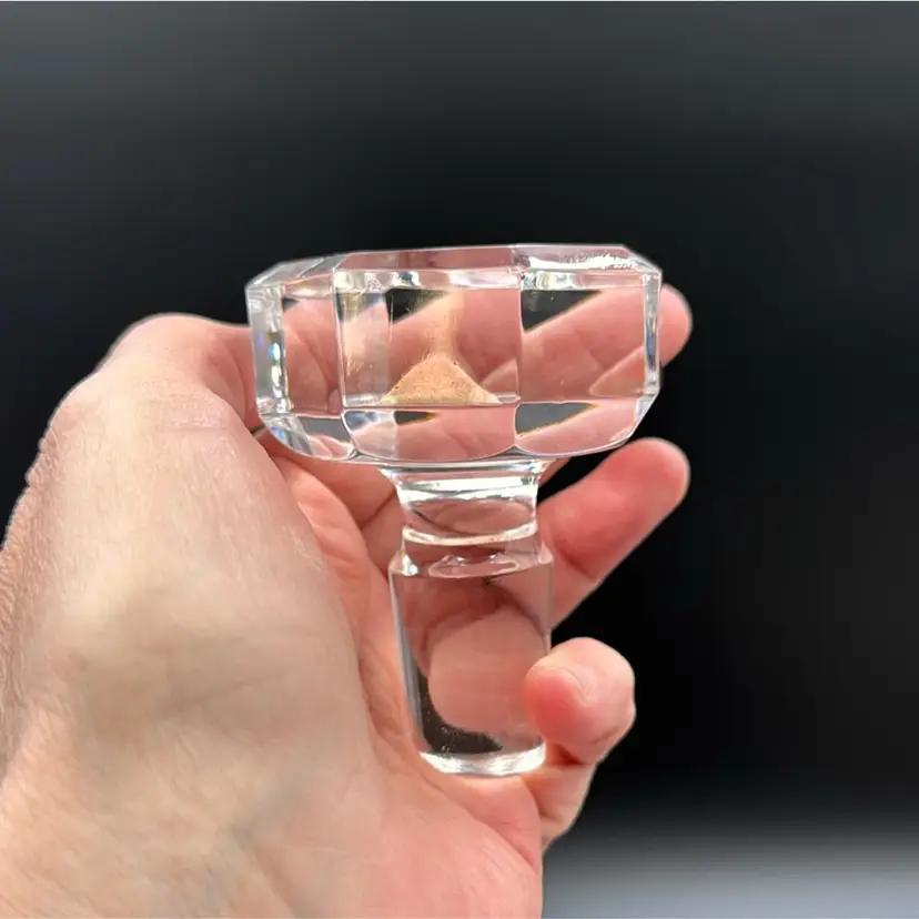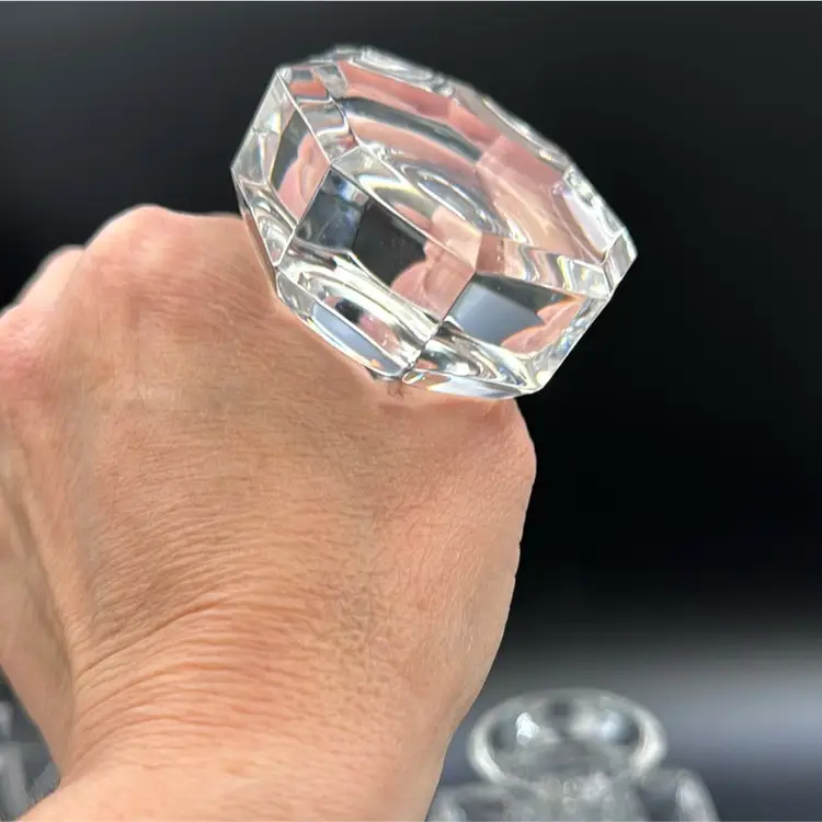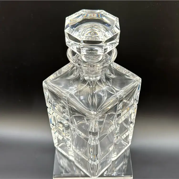 9”T 31/2”W crystal stopper 3” no chips, cracks or breaks flawless piece of crystal art. Has a Ponto mark on the bottom, no maker mark.