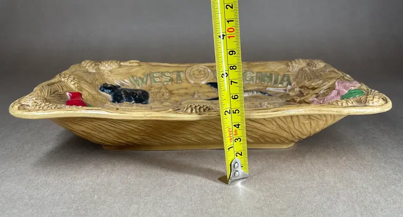 See photos for condition and measurements. Blue painter's tape point to a very small flake in the finish.