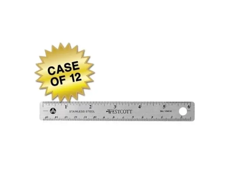 The Westcott 12-Pack Stainless Steel 6" Office Ruler with Cork Base offers a collection of premium rulers engineered for precise and accurate measurements. These rulers are constructed from durable stainless steel and incorporate a practical cork base to prevent slippage. Their compact 6-inch size makes them highly suitable for a diverse range of home and workshop applications, guaranteeing consistent and dependable outcomes. Backed by the reputable Westcott brand, these rulers are an essential tool for individuals requiring exact measurement instruments.