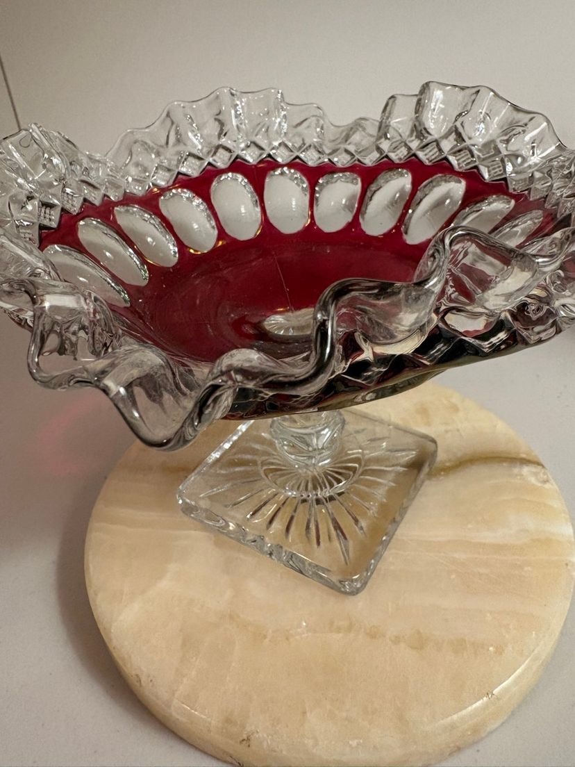 Westmoreland Waterford Wakefield Crimped RUBY FLASH RUFFLED COMPOTE 5½" X 8"