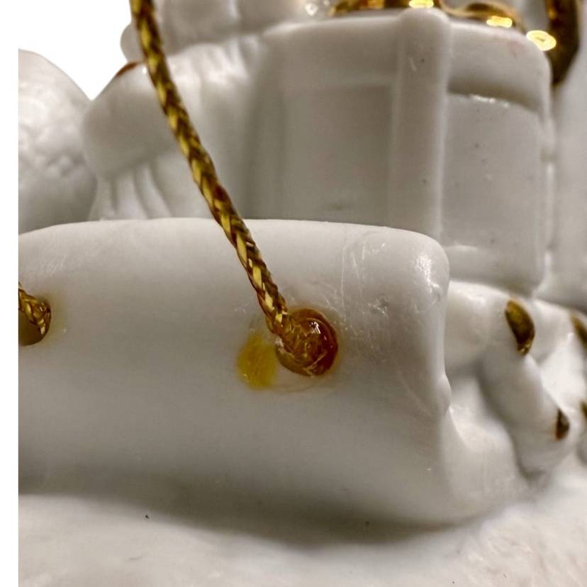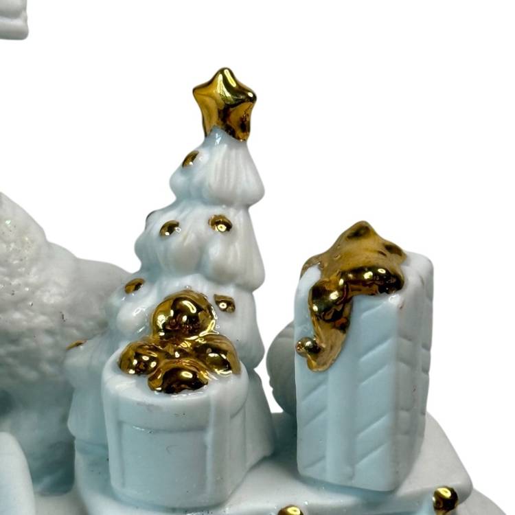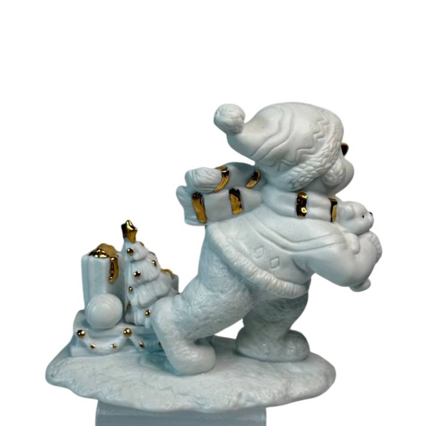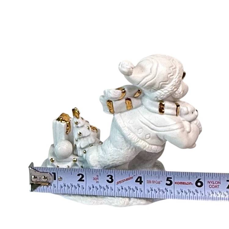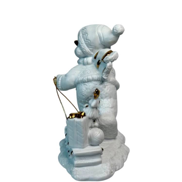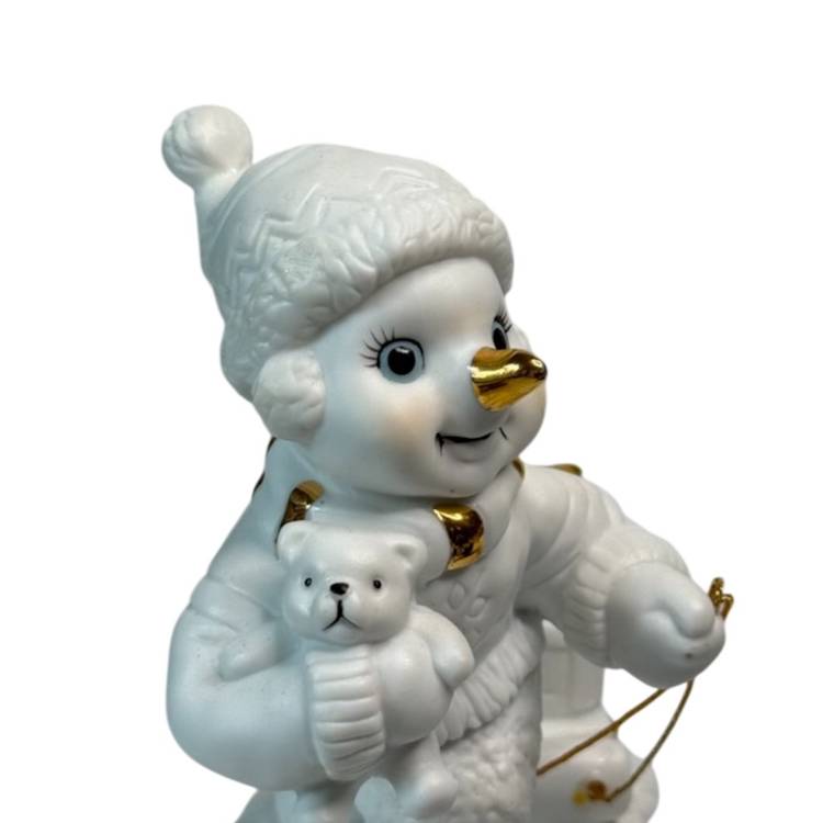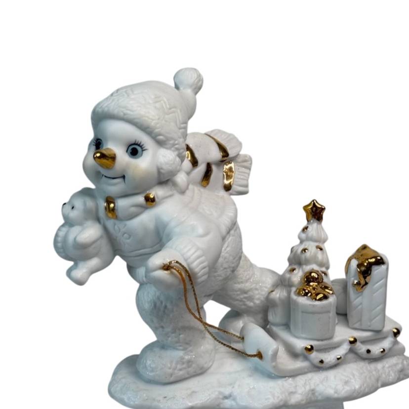 This charming snowman figurine from the Grandeur 2000 collection brings nostalgic holiday cheer with a sled full of gifts, and gold accents.