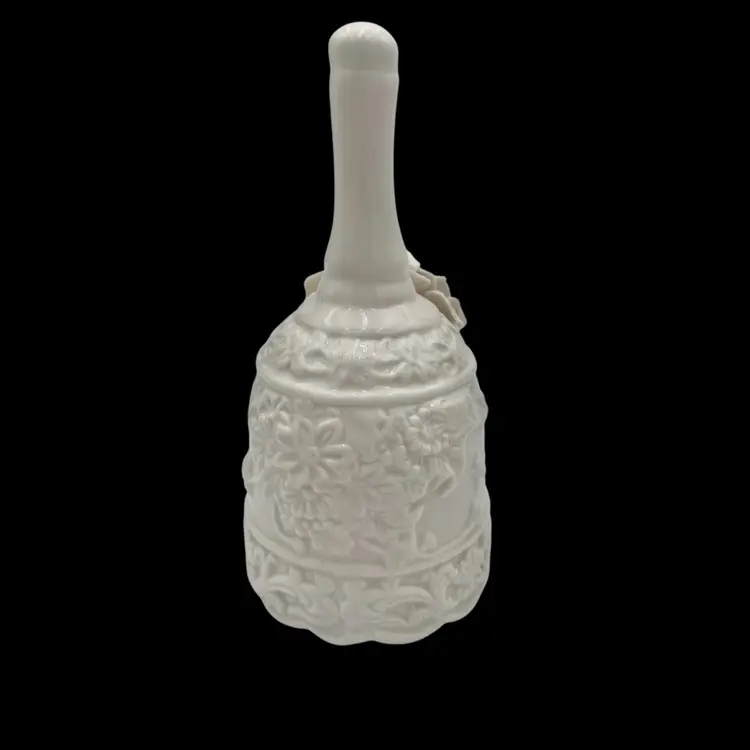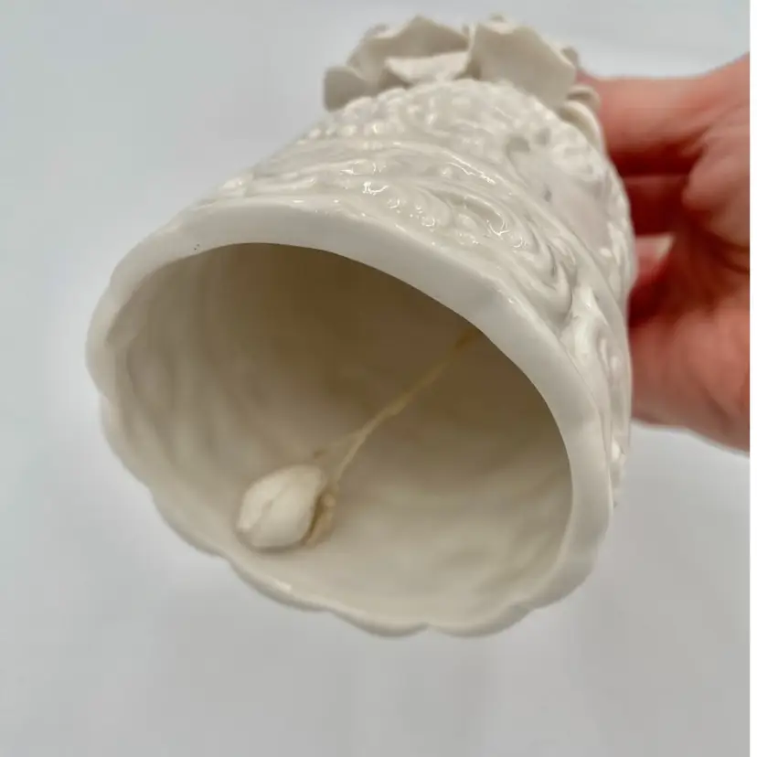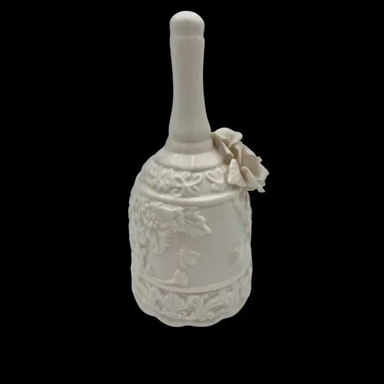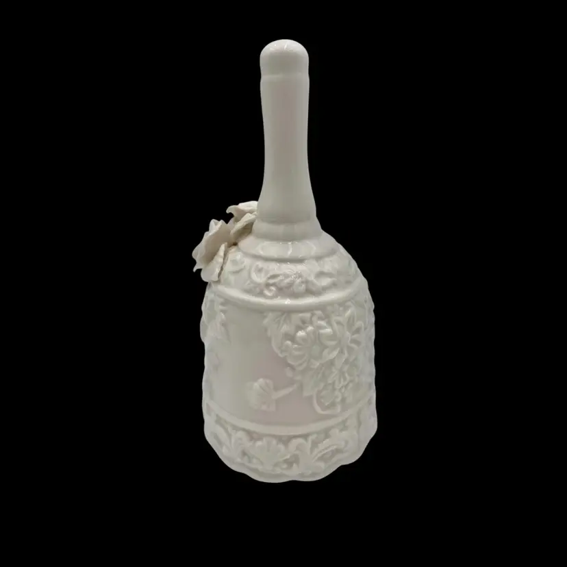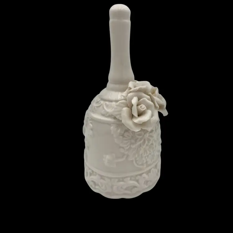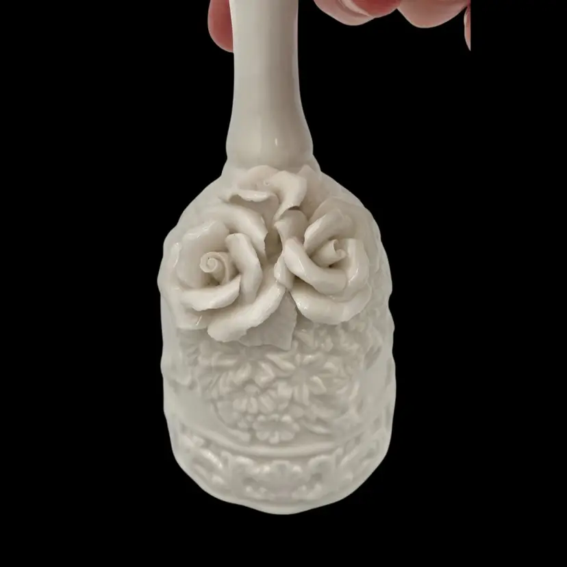 White/Ivory Porcelain Bell, Applied/Sculpted Roses on Bell, Embossed Design