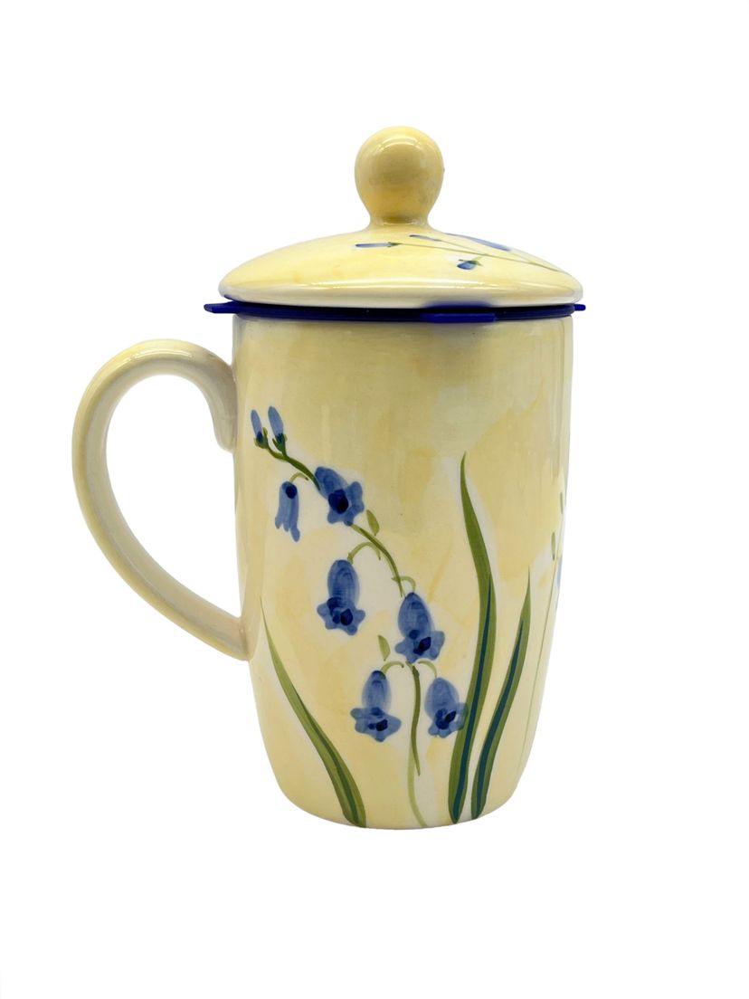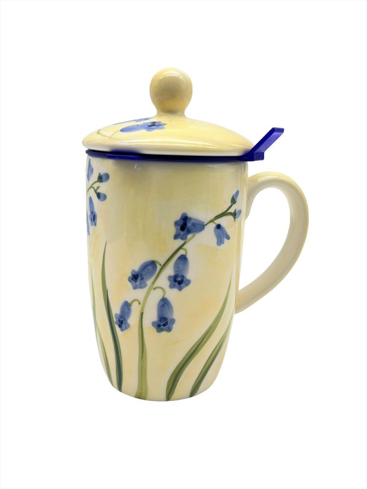Whittard of Chelsea Ceramic Coffee /Tea, Mug, Lid, Infuser Bluebells, Amaranta