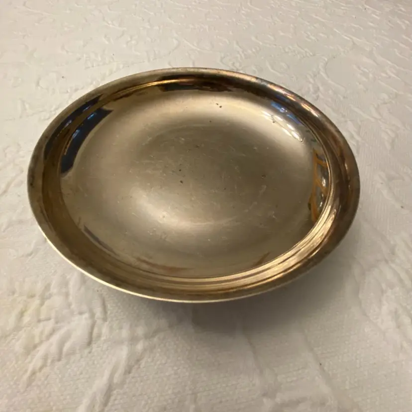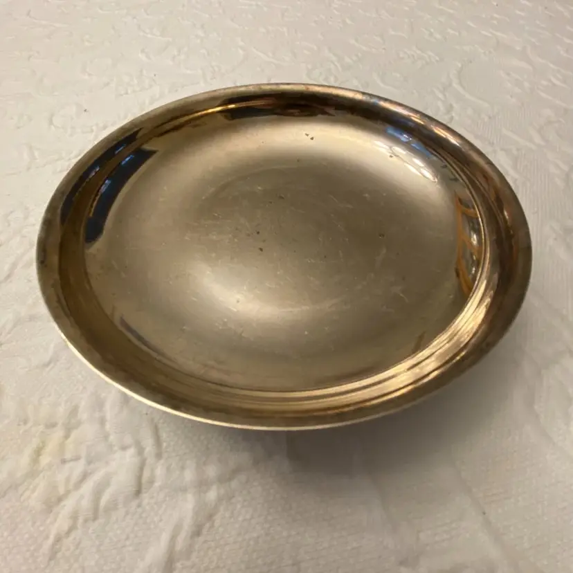 This is a beautiful signed VINTAGE SILVER PLATED PAUL REVERE BOWL made by William Rogers. The bowl measures approximately 5” in diameter and 3” high and is in very good vintage condition with a few areas that could use polishing—see photos. This gorgeous piece would look great styled on a shelf or holding small items on your table—fill it with some shiny ornaments and it would be festive and beautiful.